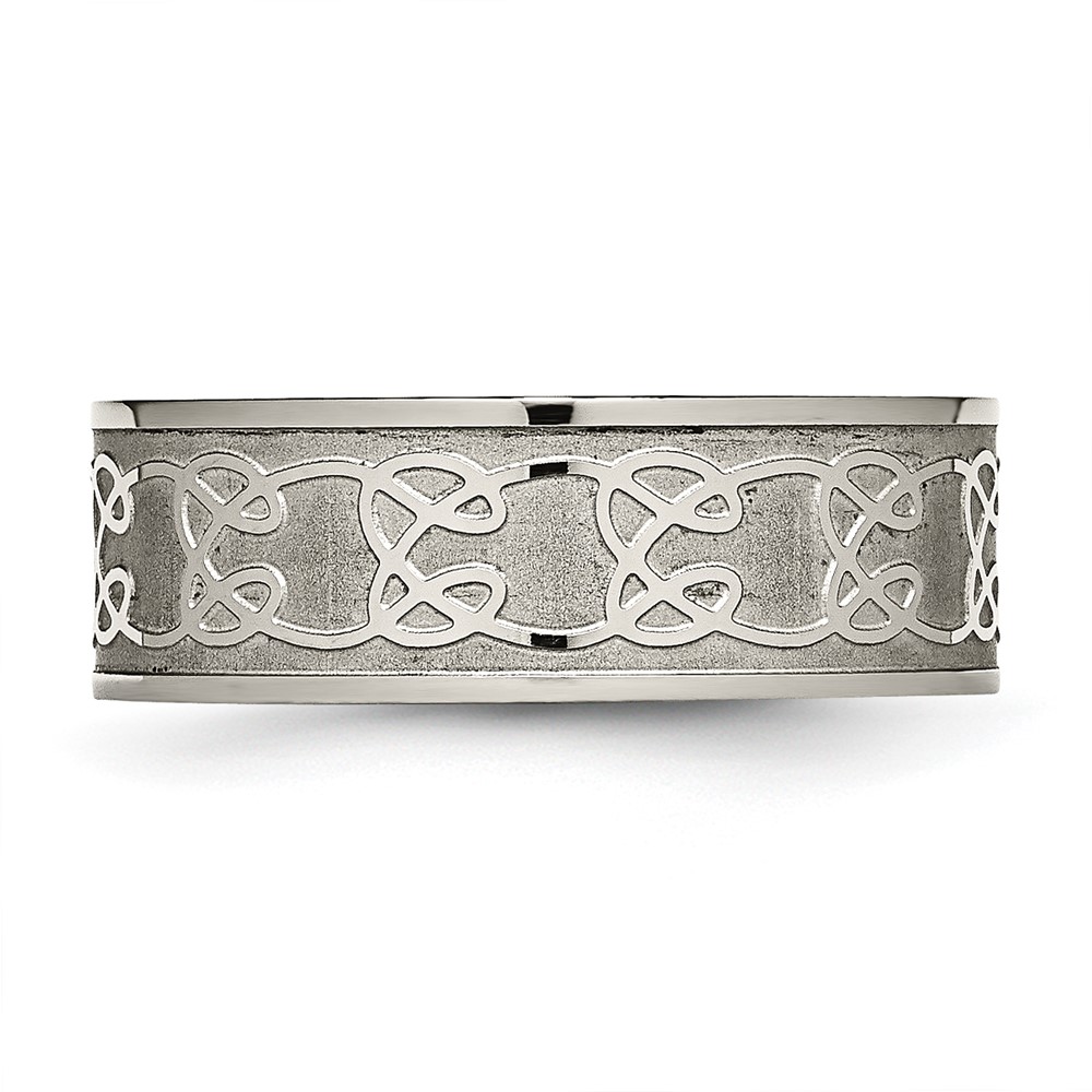 Chisel Titanium Brushed Center 8mm Scroll Design Band