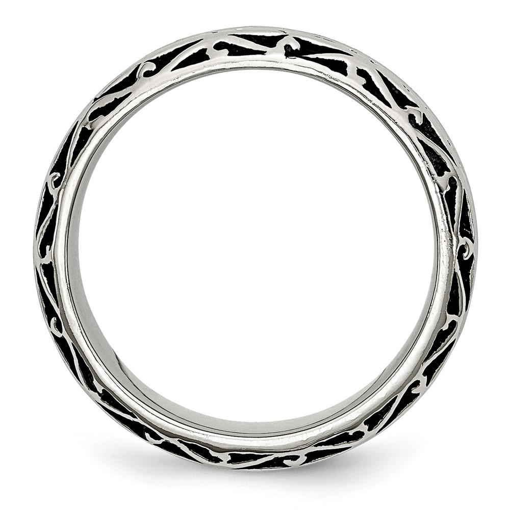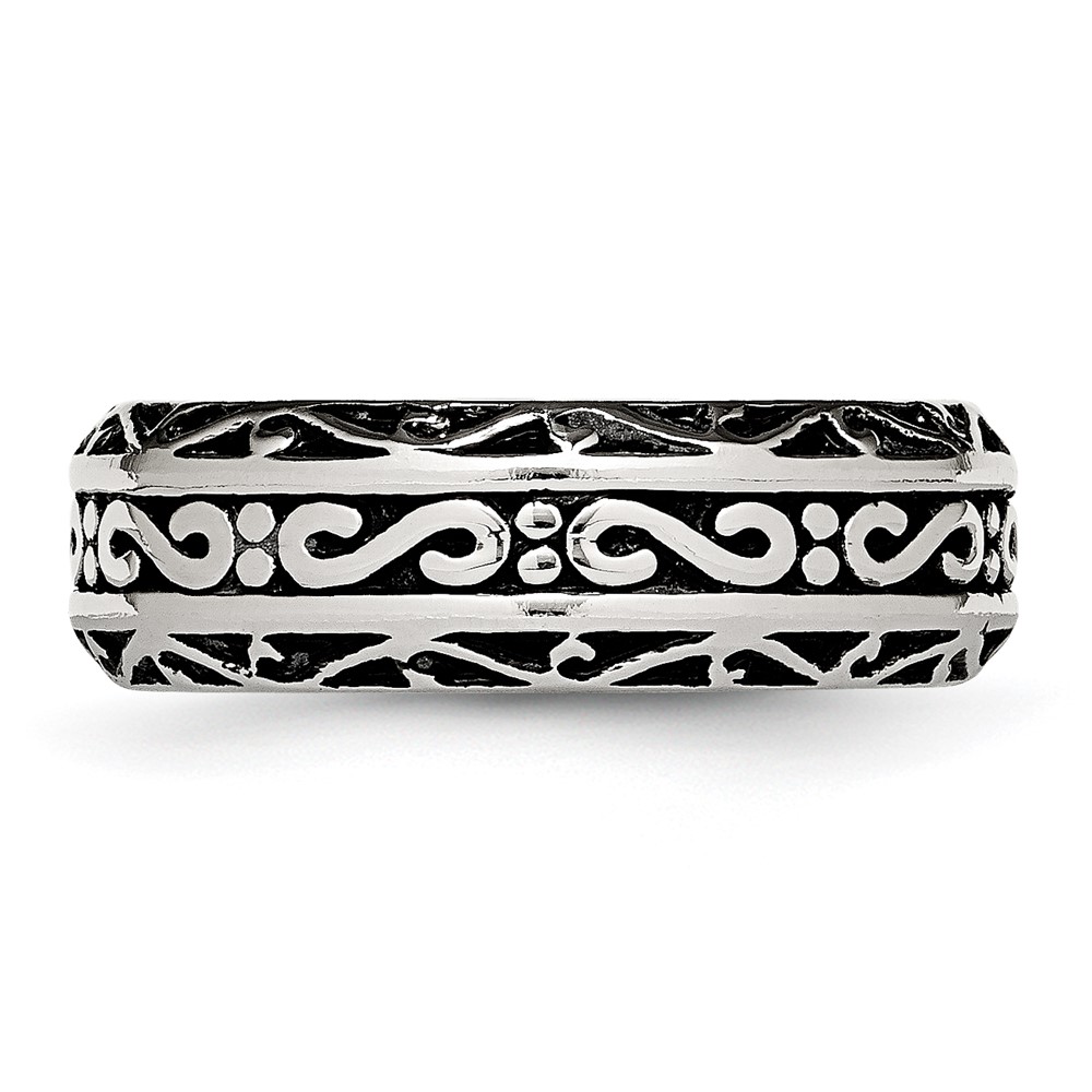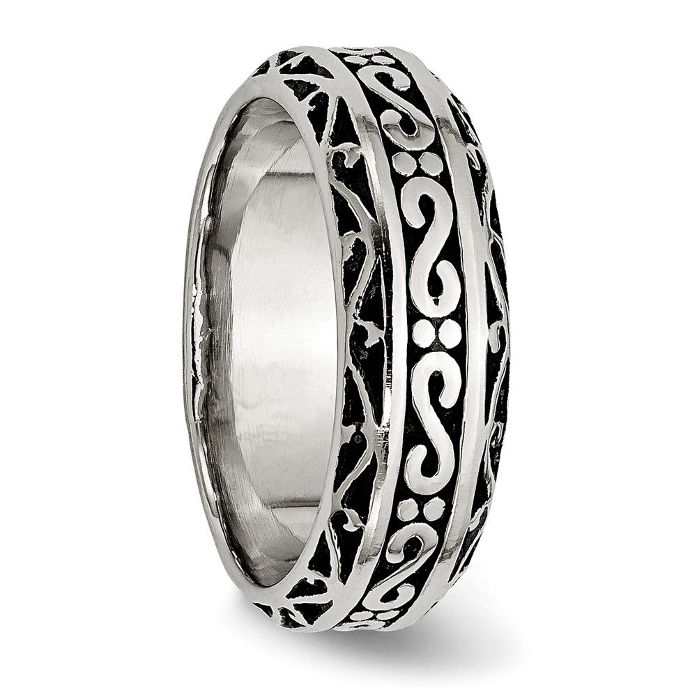 Chisel Stainless Steel Antiqued and Polished Swirl Design 7mm Band