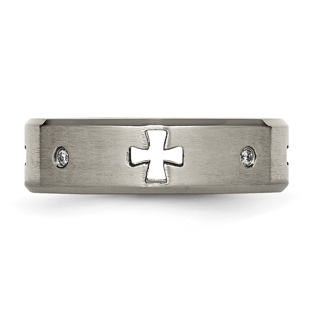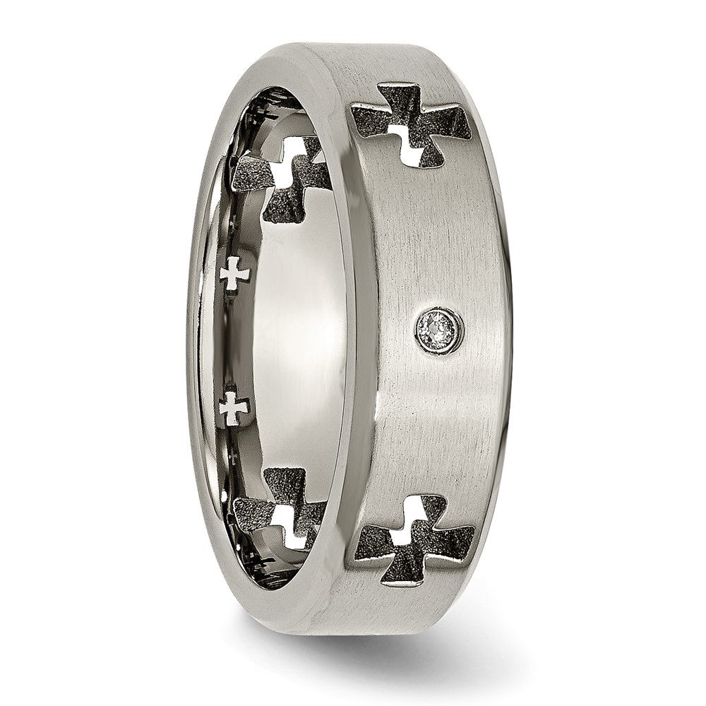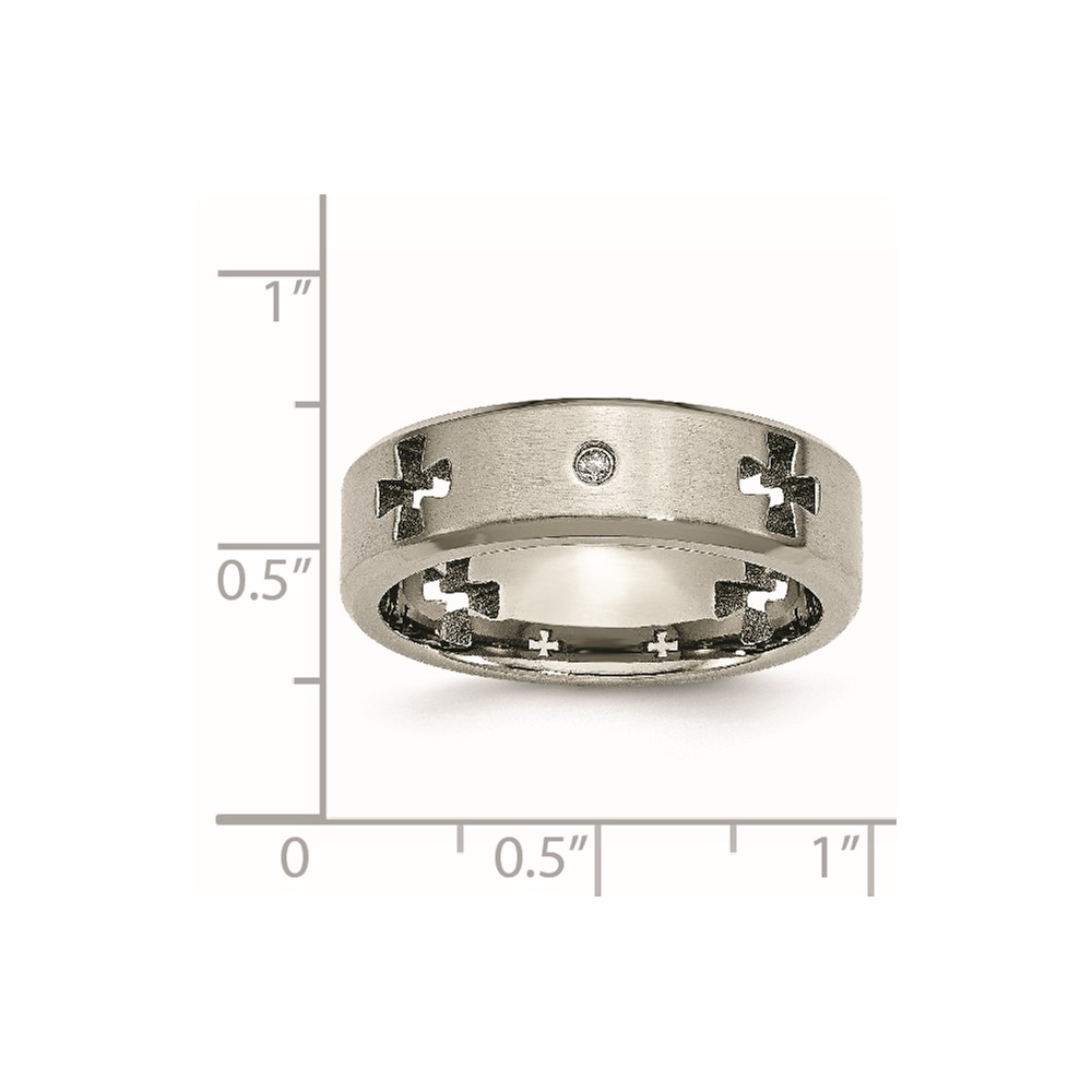 Chisel Titanium Brushed and Polished 1/20 Carat Diamond Cross Cut Out 7mm Band