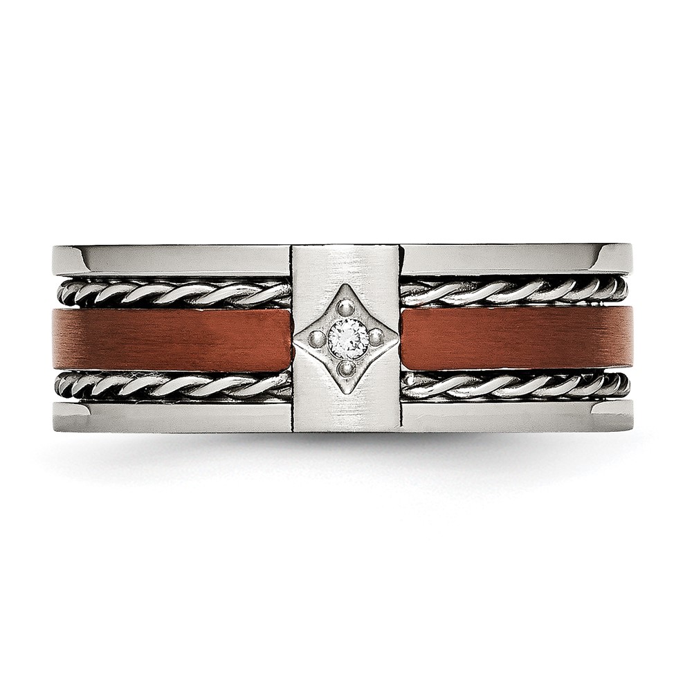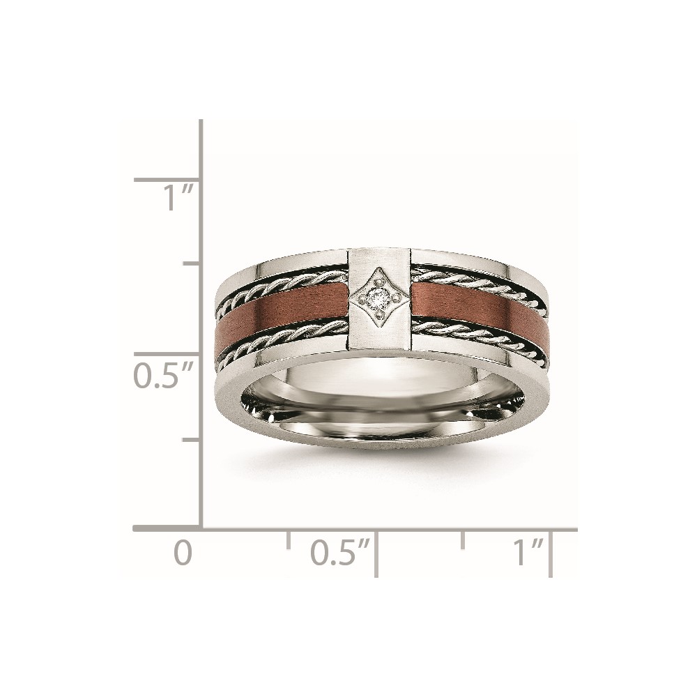 Chisel Stainless Steel Brushed and Polished Brown IP-plated .02 Carat Diamond 8mm Band