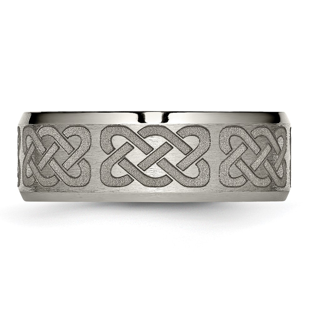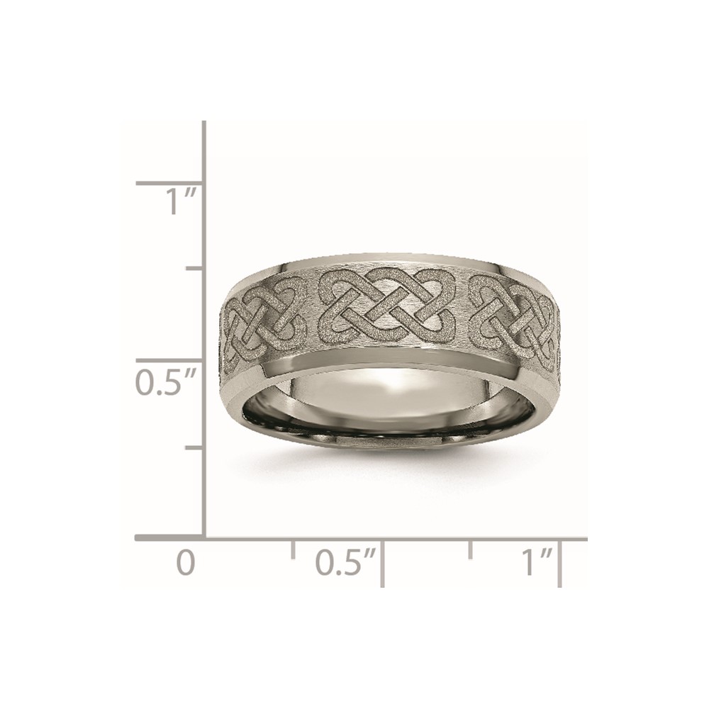 Chisel Titanium Brushed and Polished Celtic Laser Design 8mm Beveled Edge Band
