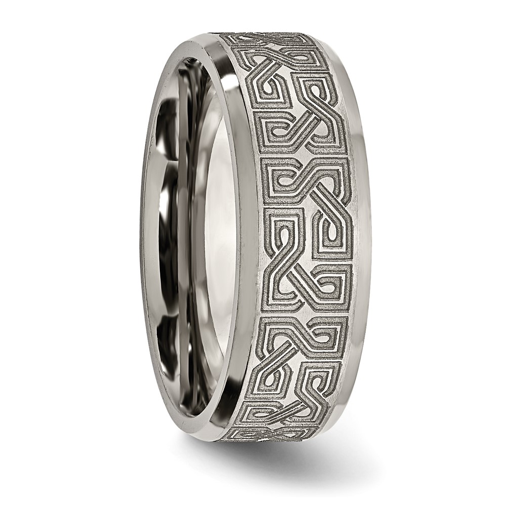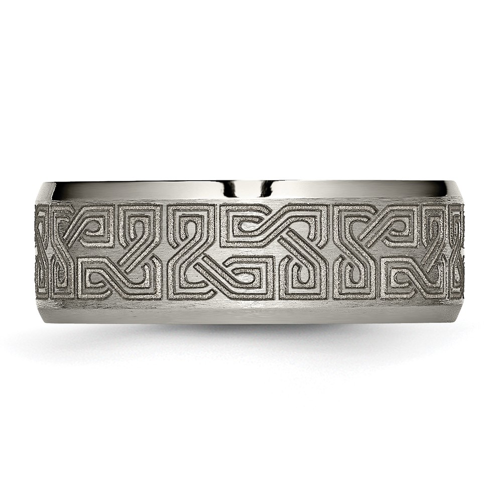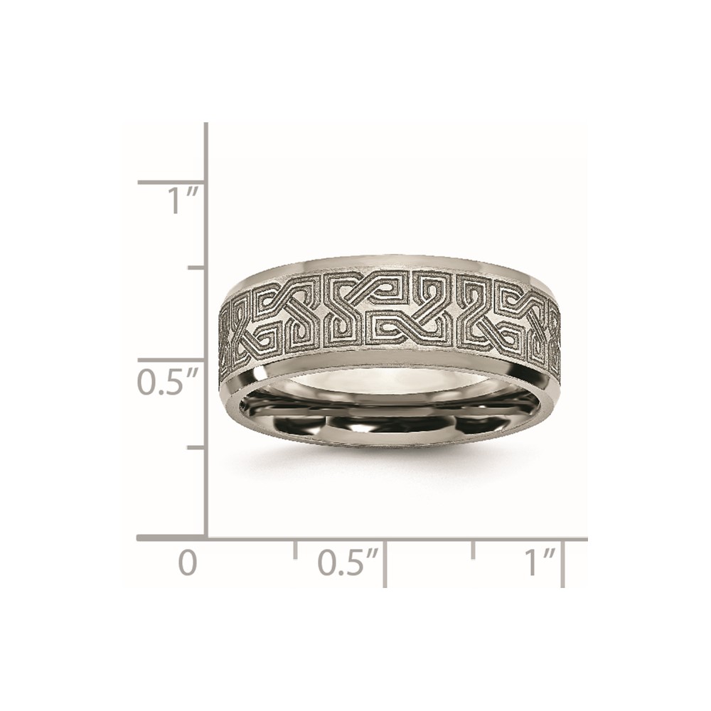 Chisel Titanium Brushed and Polished Greek Key Laser Design 8mm Beveled Band