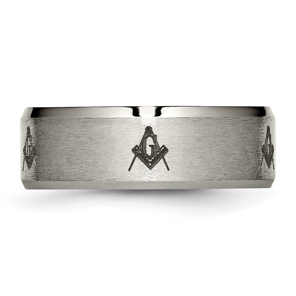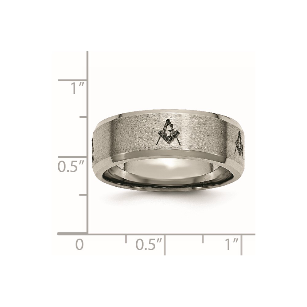 Chisel Titanium Brushed and Polished Masonic Laser Design 8mm Beveled Edge Band