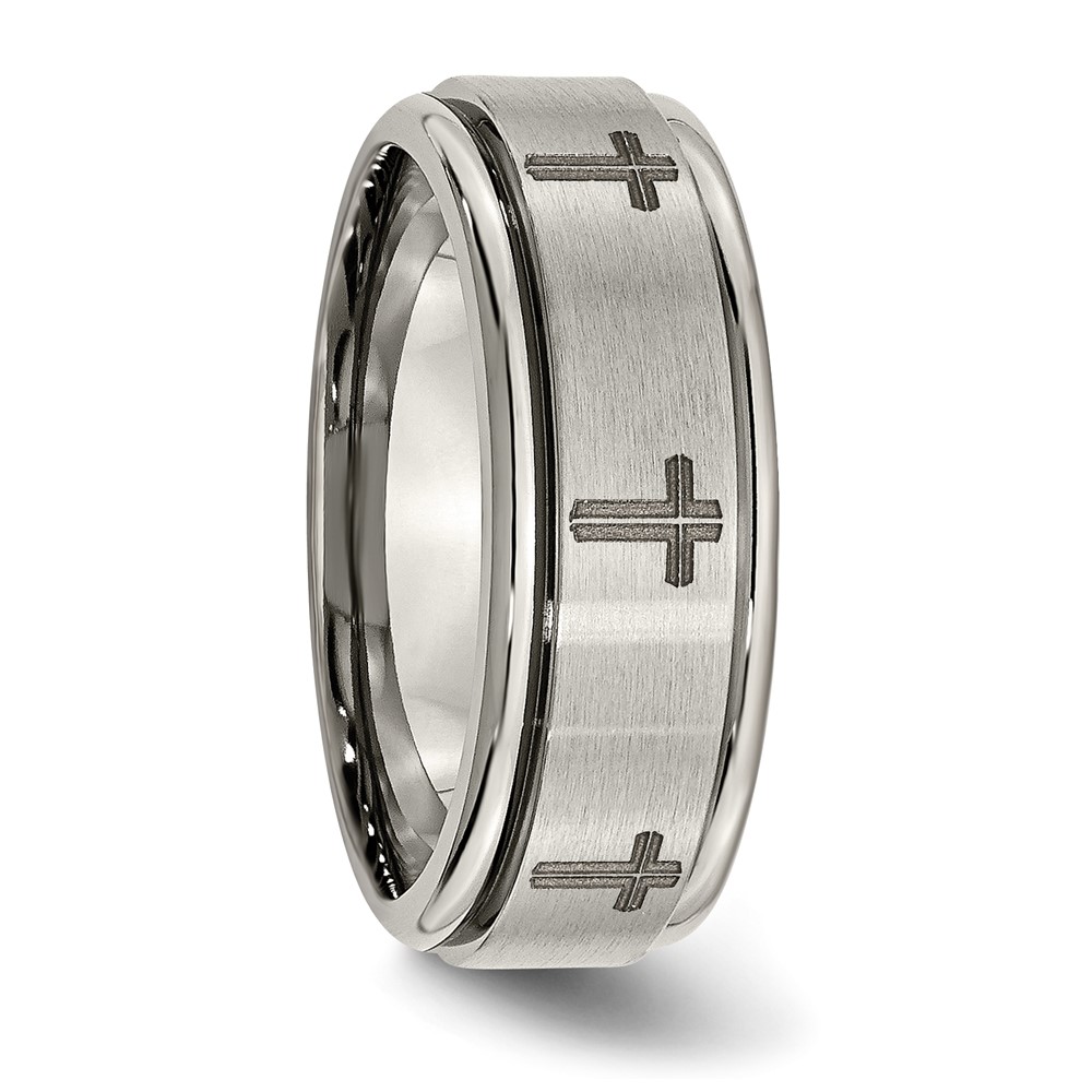 Chisel Titanium Brushed and Polished Cross Laser Design 8mm Ridged Edge Band