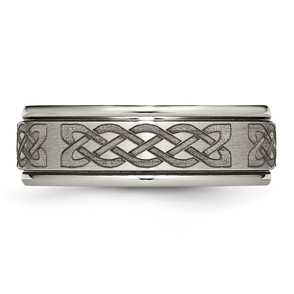 Chisel Titanium Brushed and Polished Celtic Laser Design 8mm Ridged Edge Band