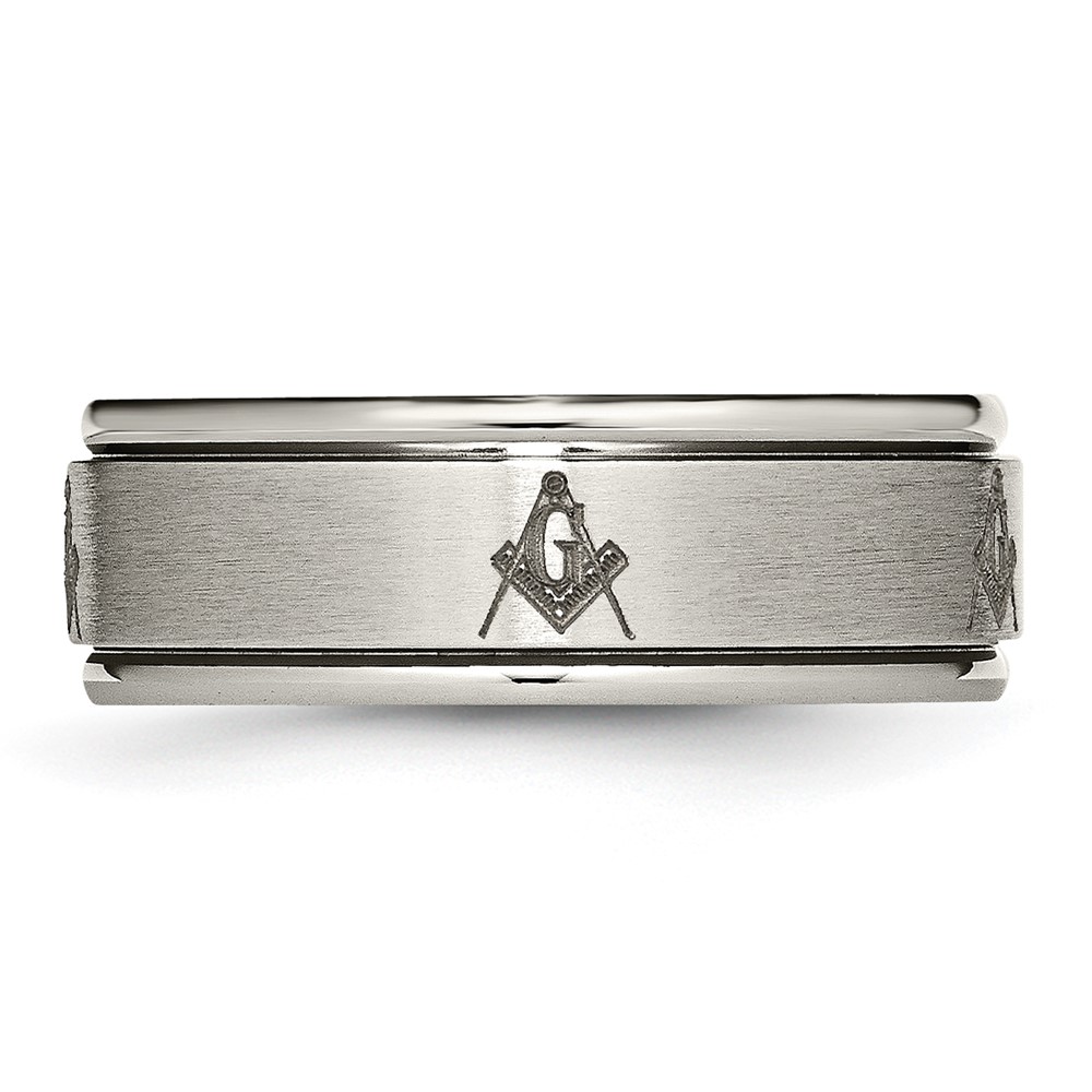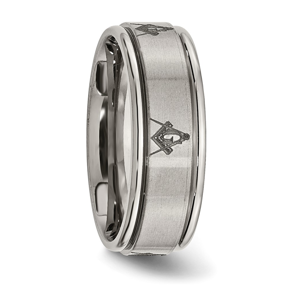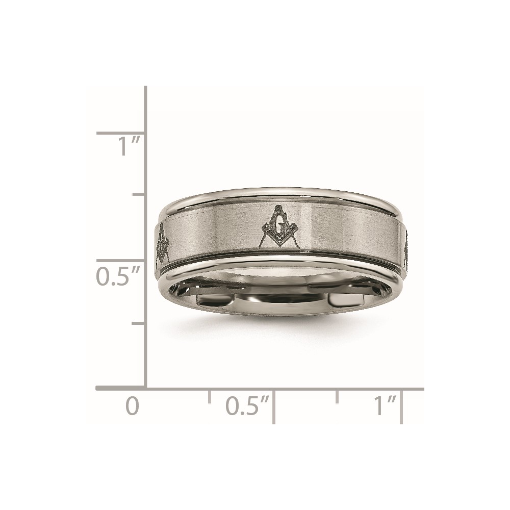 Chisel Titanium Brushed and Polished Masonic Laser Design 8mm Ridged Edge Band