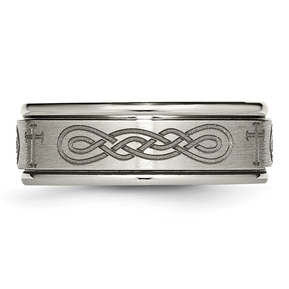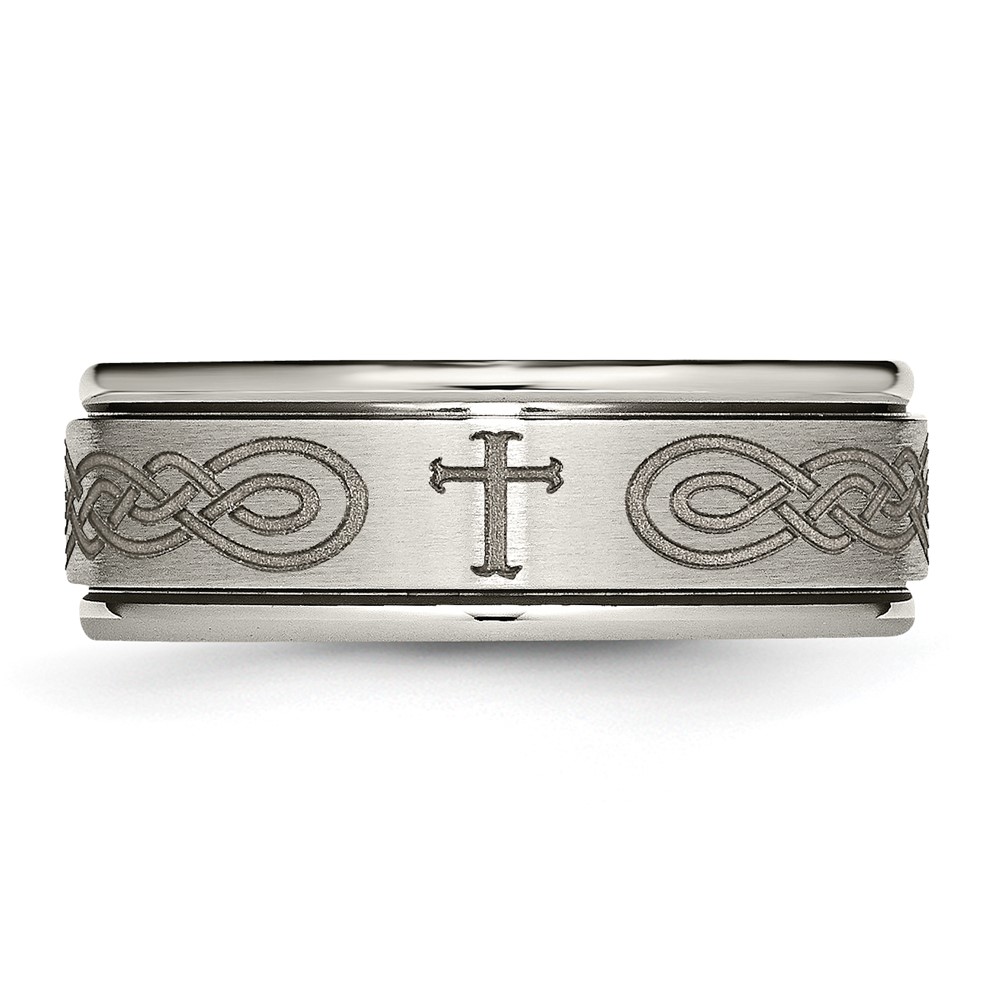 Chisel Titanium Brushed and Polished Cross Laser Design 8mm Ridged Edge Band
