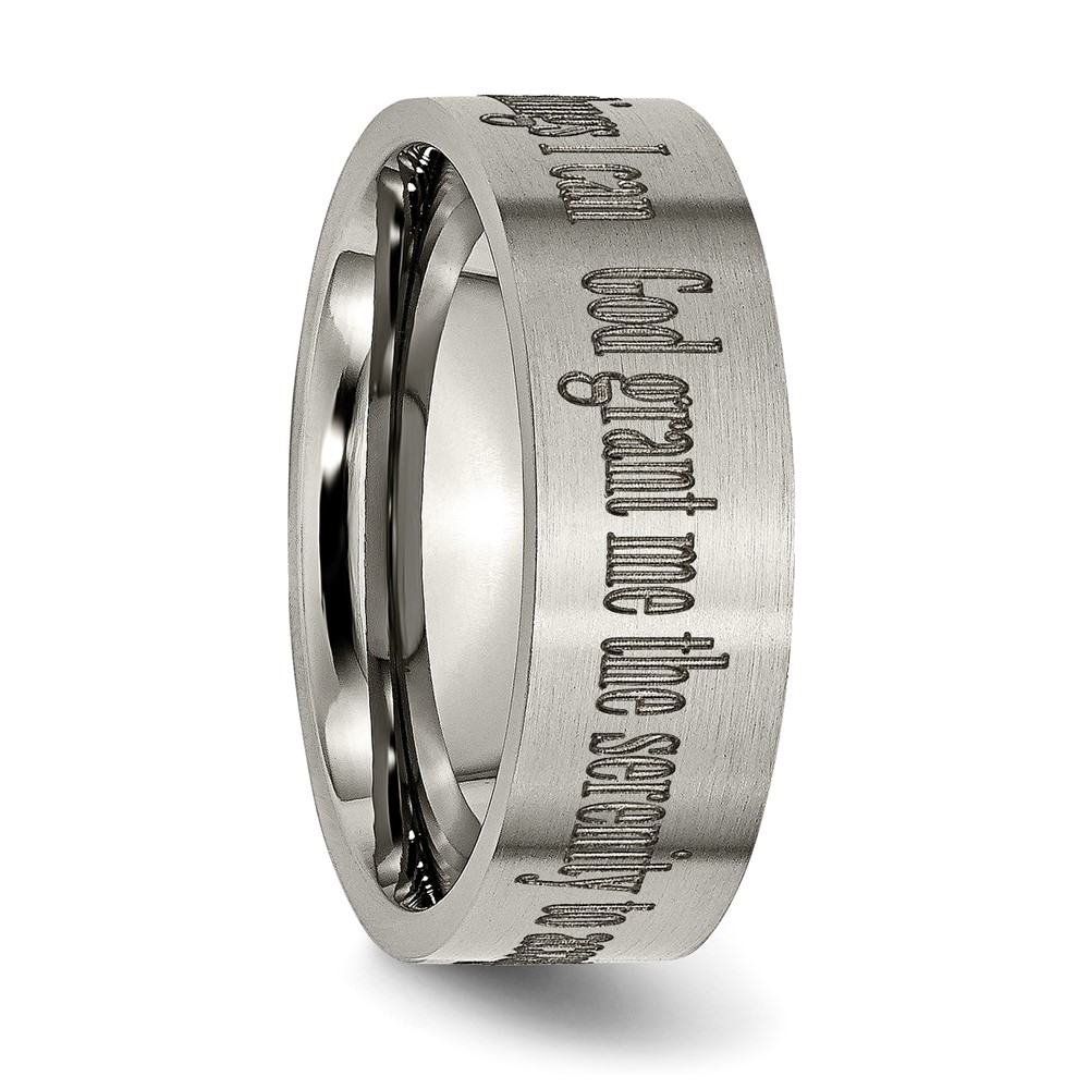 Chisel Titanium Brushed Serenity Prayer Laser Design 8mm Flat Band