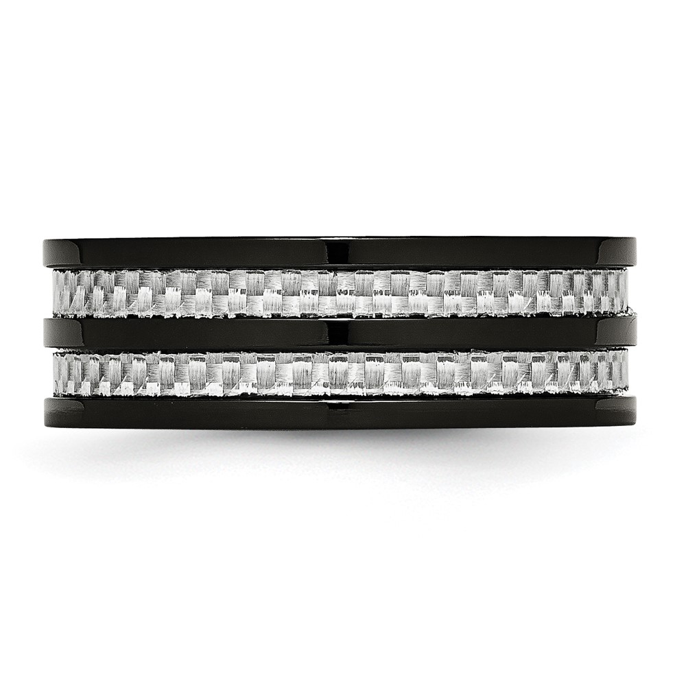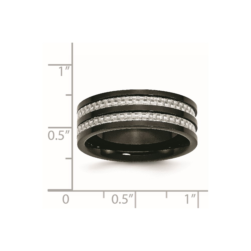 Chisel Stainless Steel Polished Black IP-plated with Grey Carbon Fiber Inlay 8mm Band