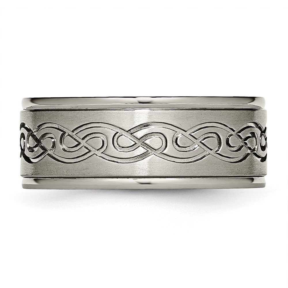 Chisel Titanium Brushed Center 9mm Scroll Design Band