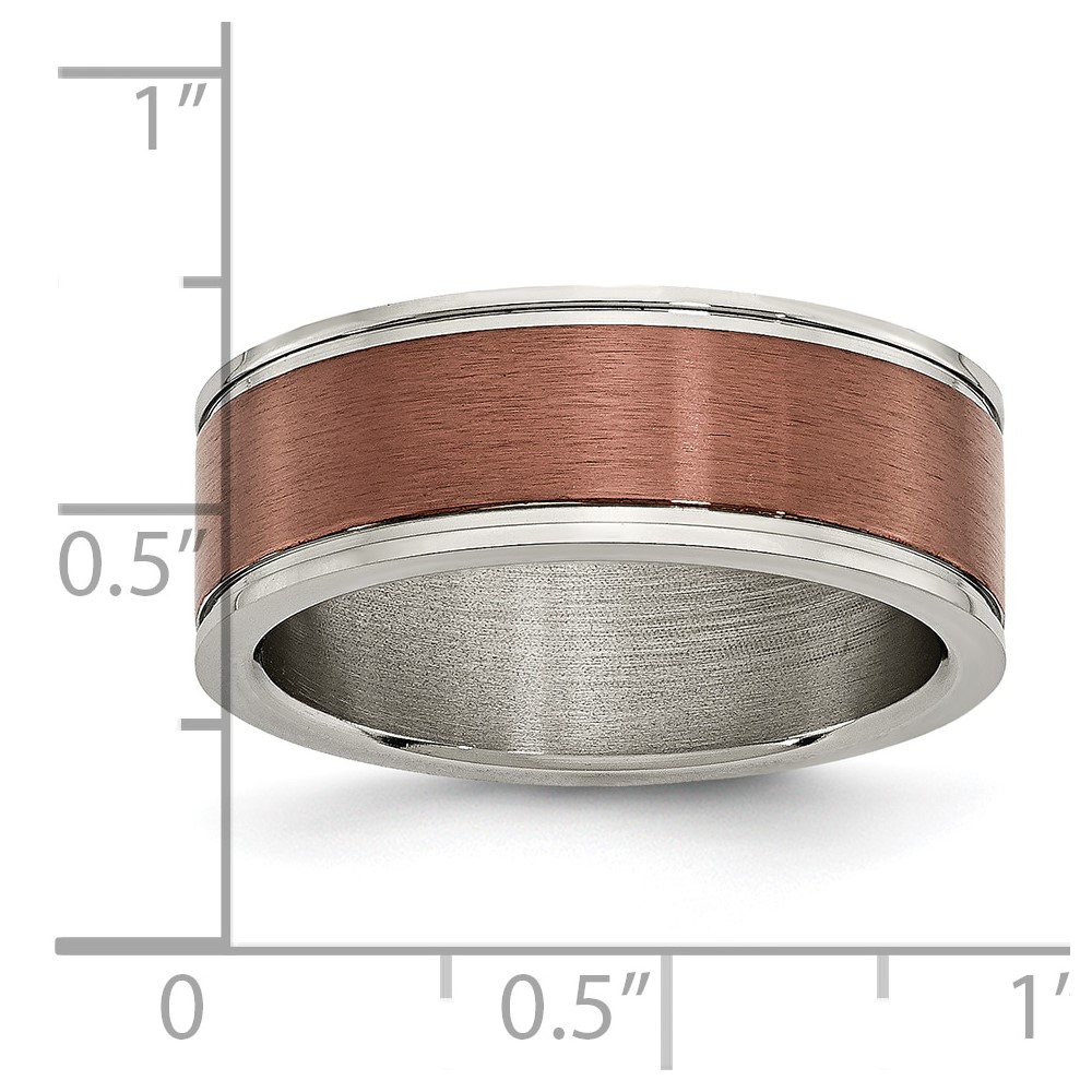 Chisel Titanium Brushed Center Brown IP-plated 8mm Grooved Edge Band