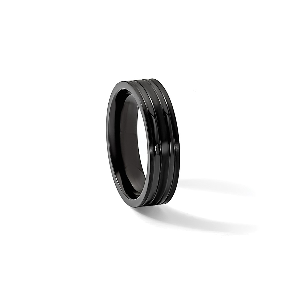 Chisel Titanium Brushed and Polished Black IP-plated 6mm Grooved Band