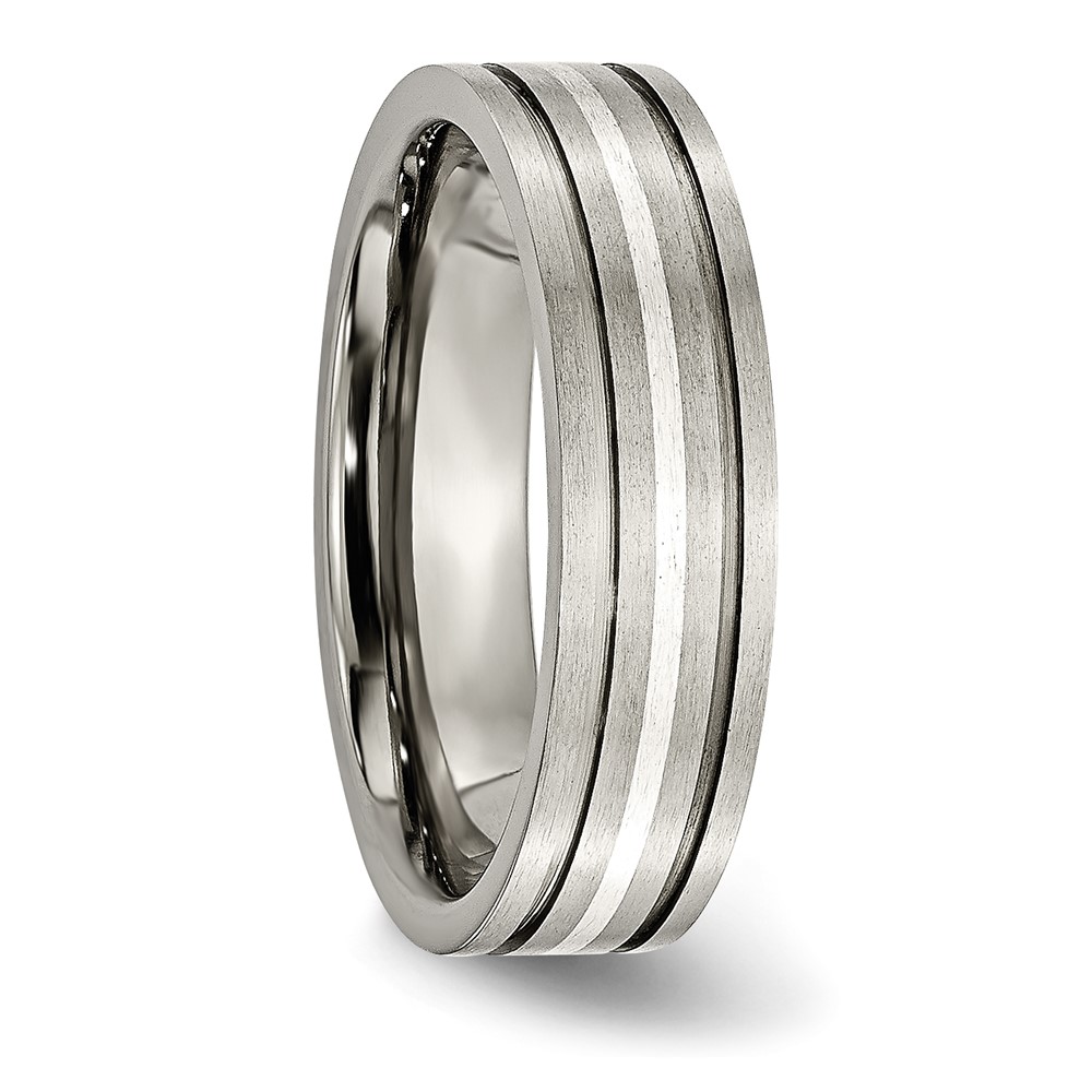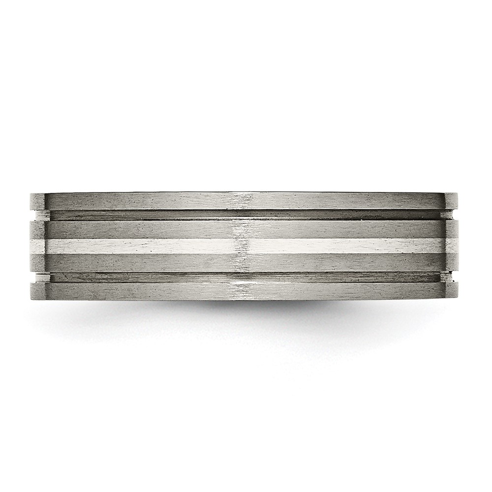 Chisel Titanium Brushed with Sterling Silver Inlay 6mm Grooved Band