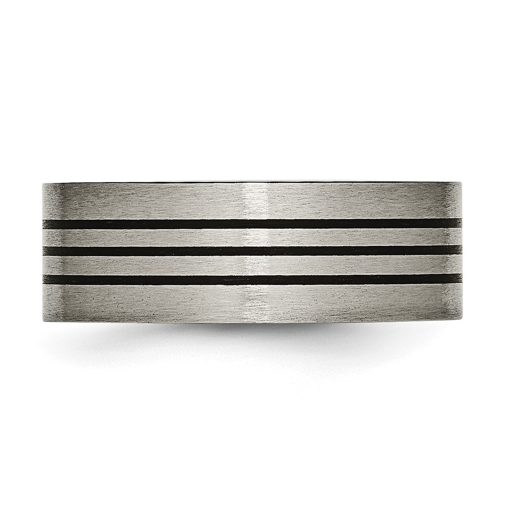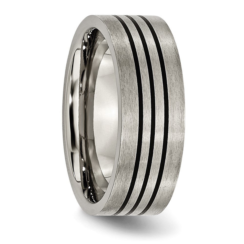 Chisel Titanium Satin and Polished Black Enamel Striped 8mm Flat Band