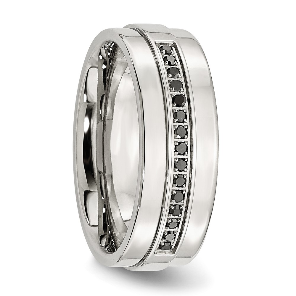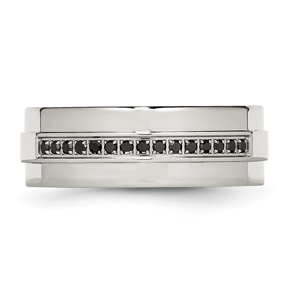 Chisel Stainless Steel Polished 1/6 Carat Black Diamond 8mm Flat Band