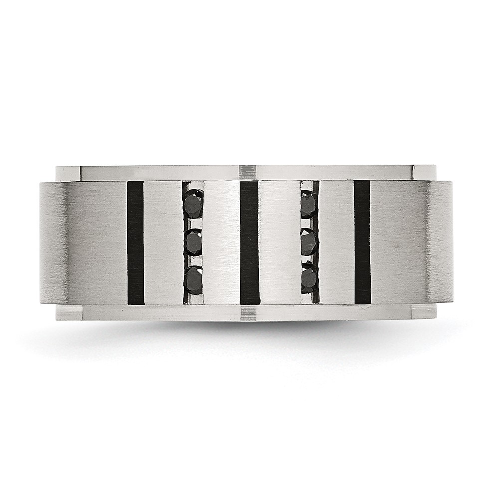 Chisel Stainless Steel Brushed Center Black IP-plated 1/6 Carat Diamond 9mm Band