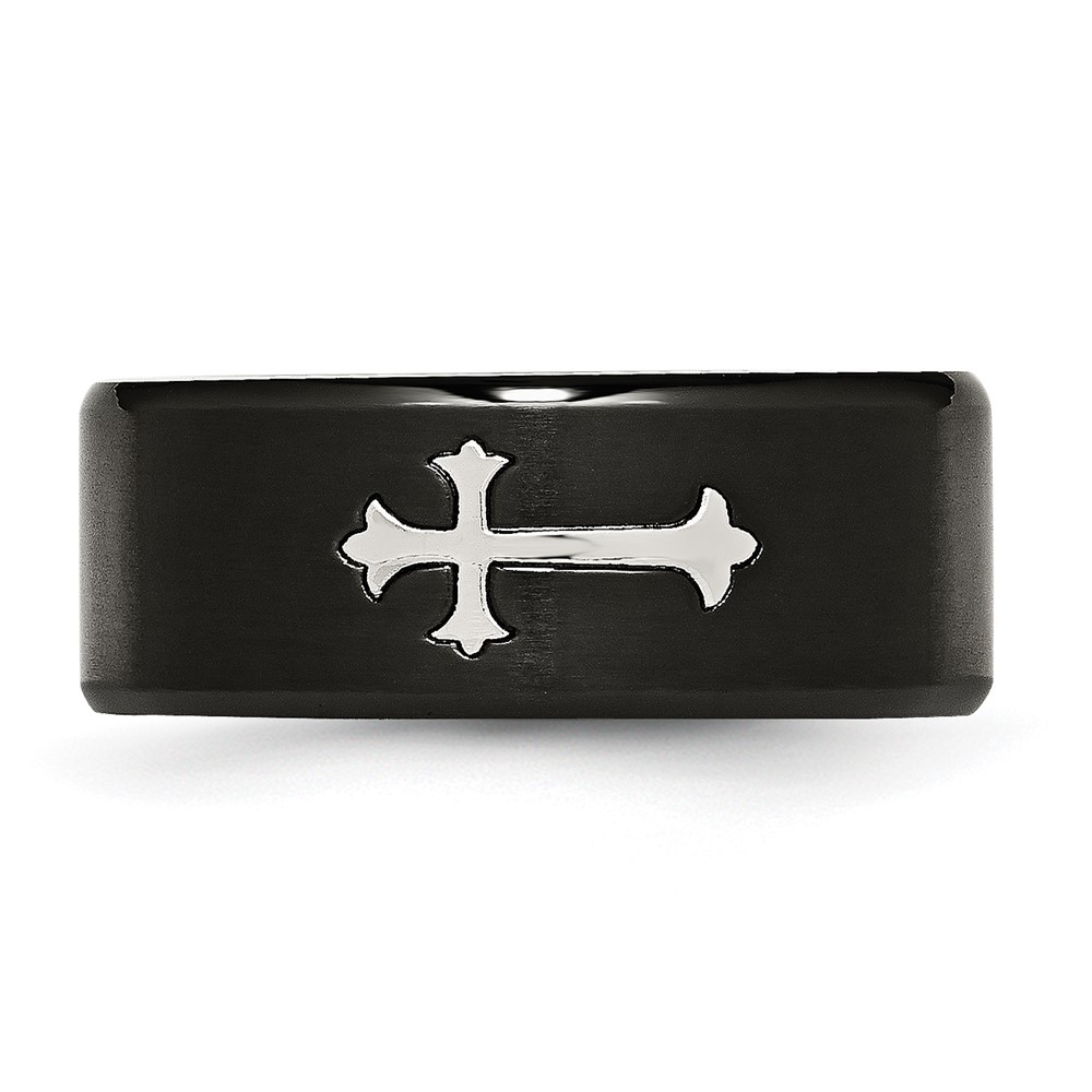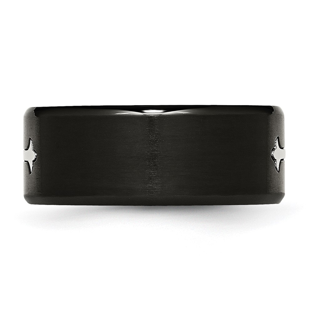 Chisel Stainless Steel Brushed Black IP-plated with Cross 9mm Band