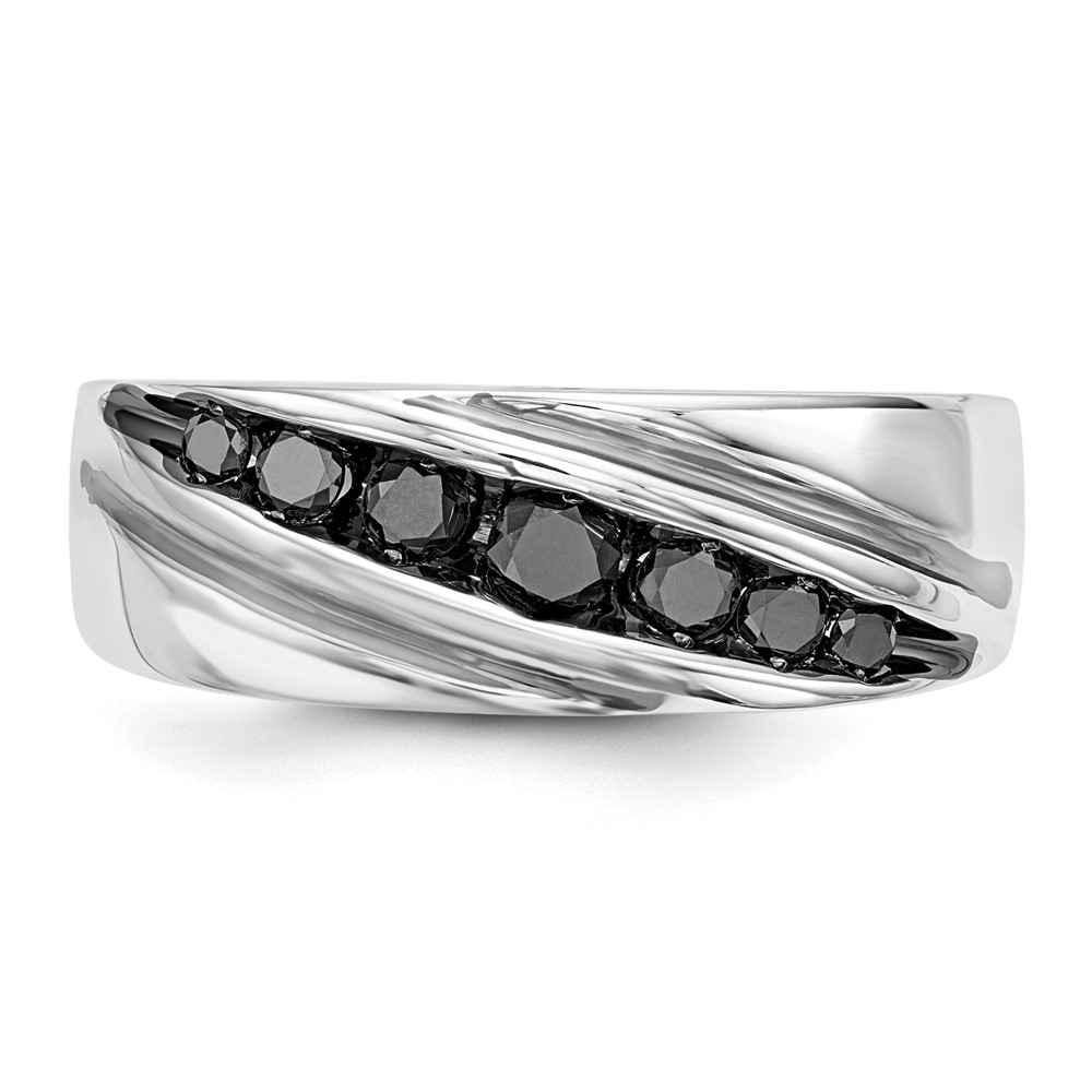 White Night Sterling Silver Rhodium-plated Black Diamond Men's Band Ring