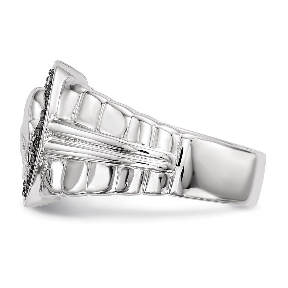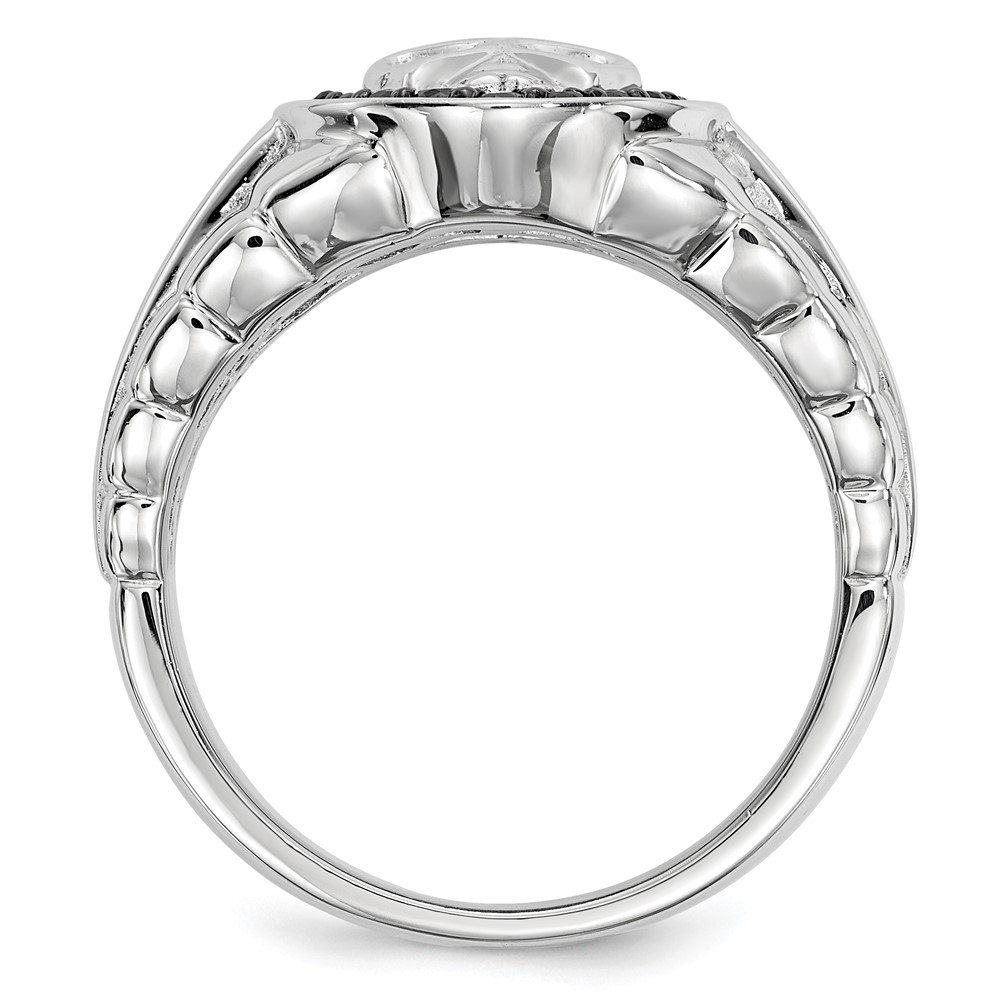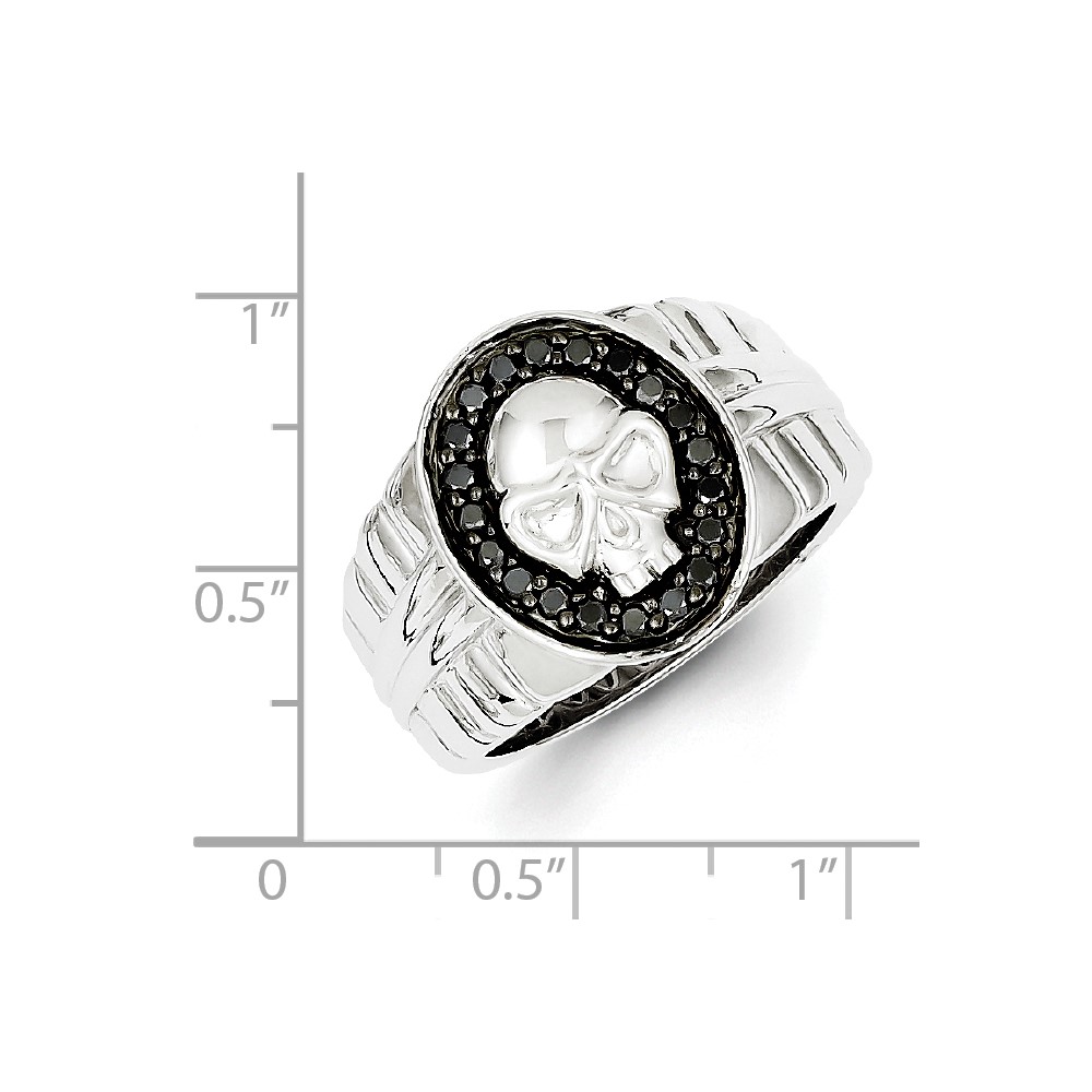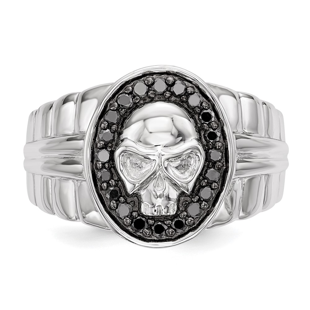 White Night Sterling Silver Rhodium-plated Black Diamond Oval Skull Men's Ring