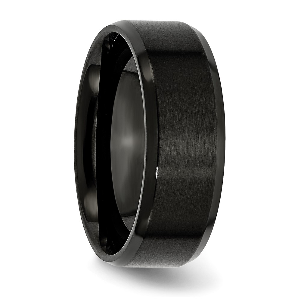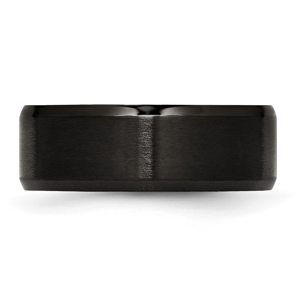 Chisel Stainless Steel Polished Brushed Center Black IP-plated 8mm Beveled Edge Band