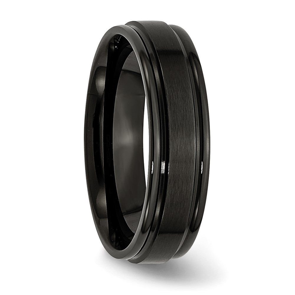 Chisel Stainless Steel 6mm Black IP-plated Brushed Center with Polished Edges Band