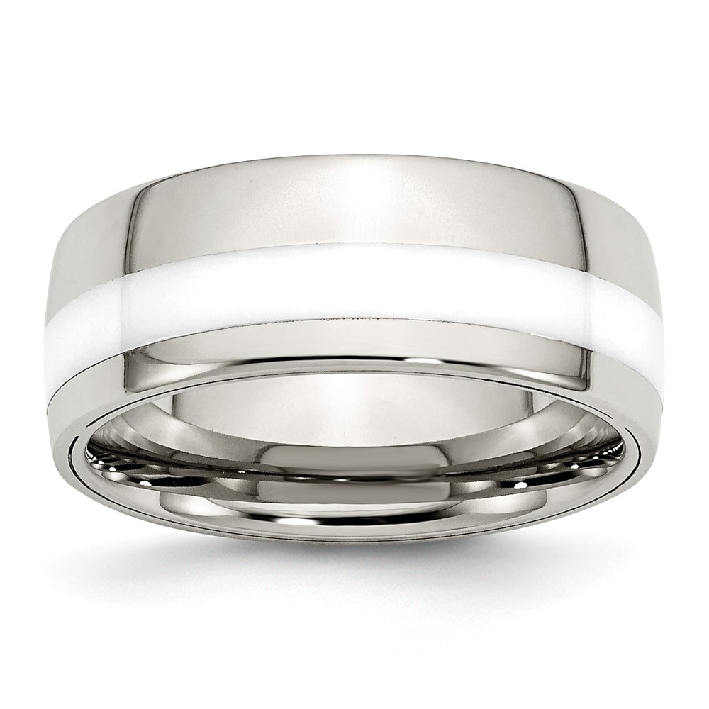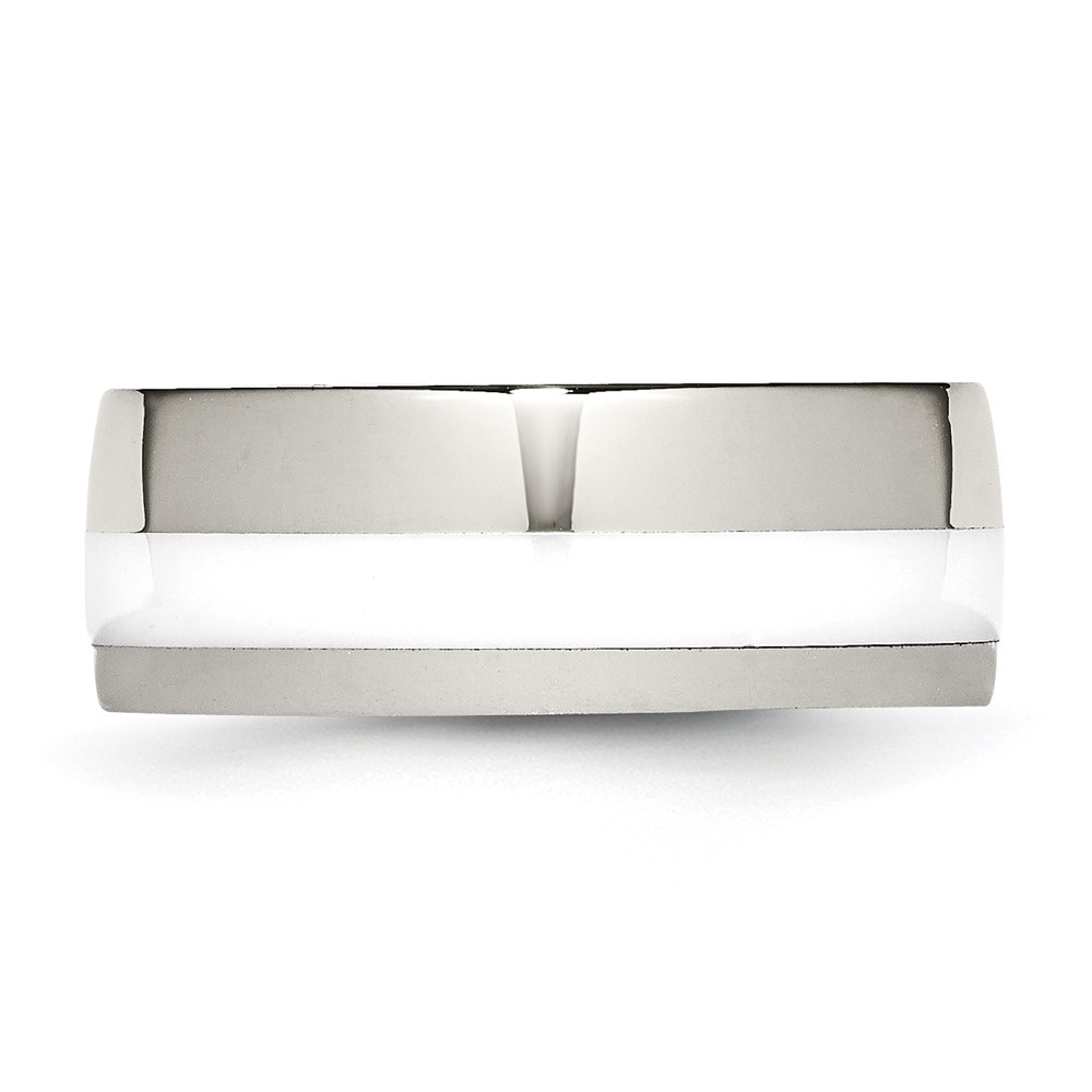 Stainless Steel Polished White Ceramic Inlay 9mm Band