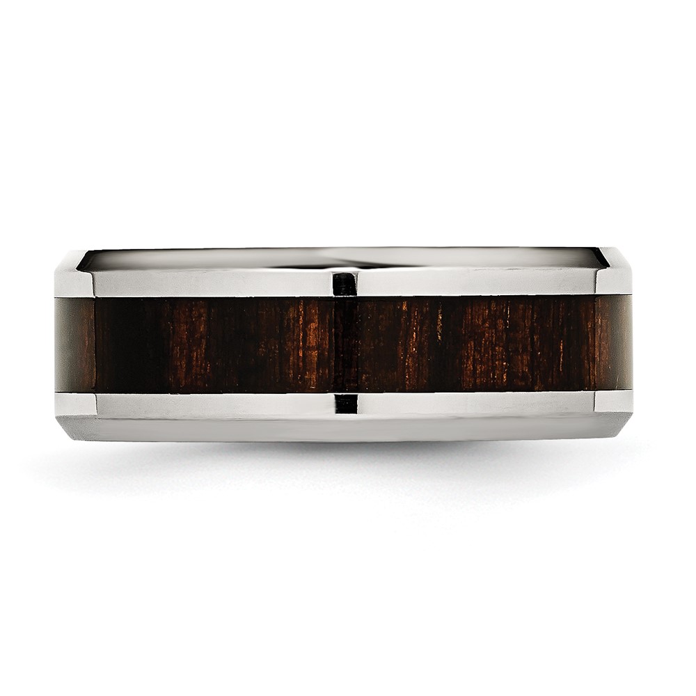 Chisel Stainless Steel Polished with Black Koa Wood Inlay Enameled 8mm Band