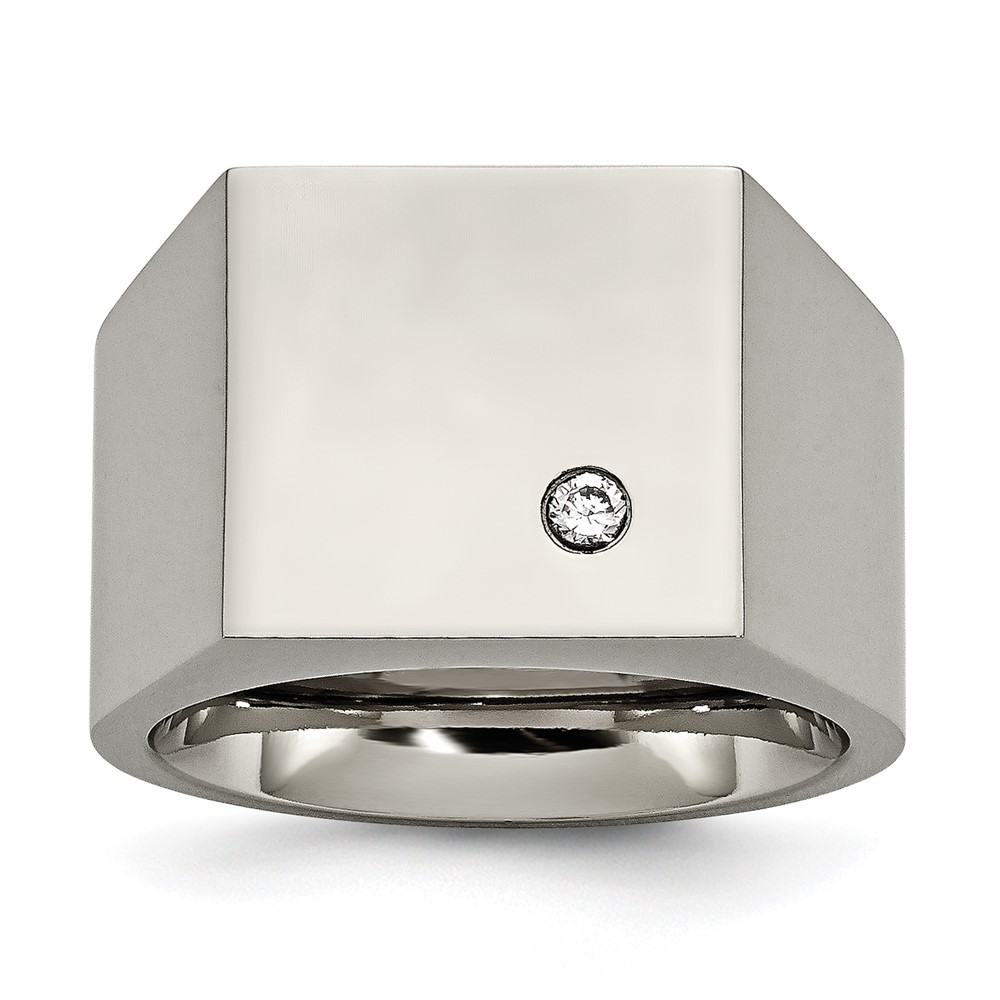 Chisel Titanium Polished CZ Signet Ring