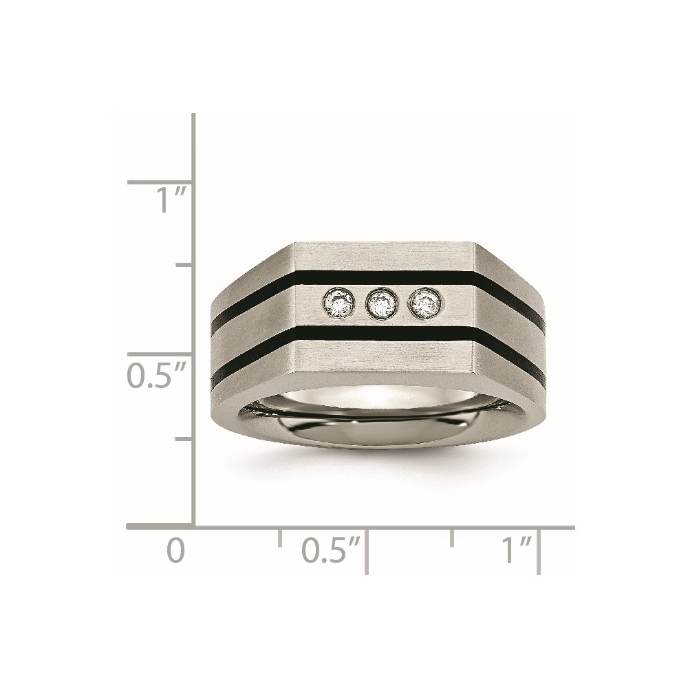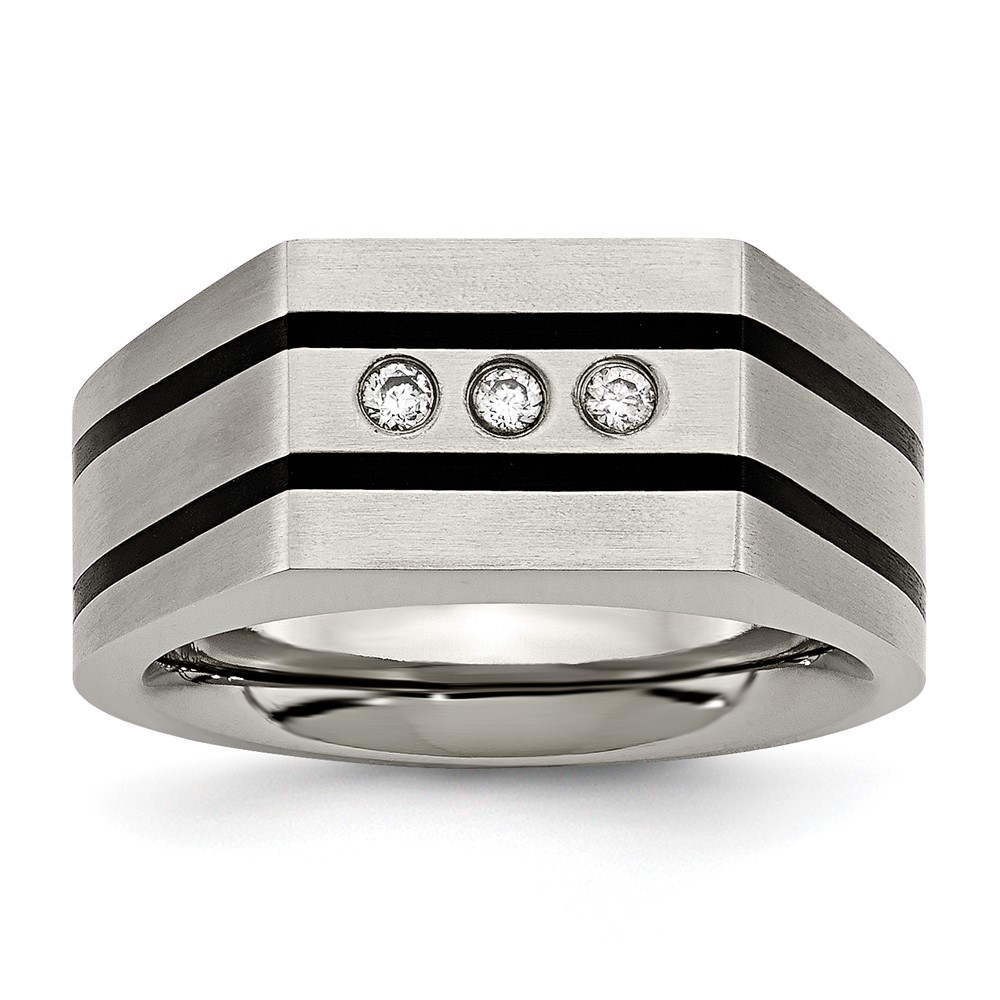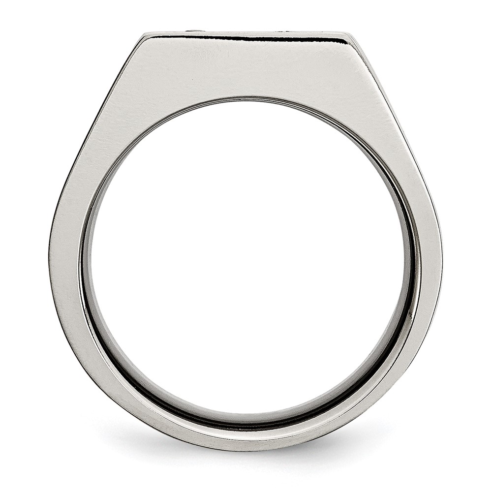 Chisel Titanium Brushed and Polished Black IP-plated CZ Signet Ring