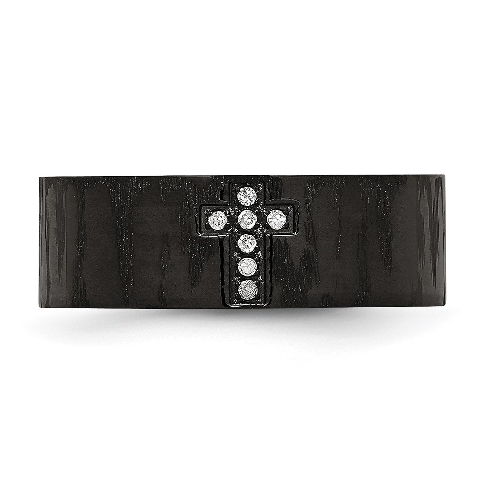 Chisel Stainless Steel Polished and Matte Black IP-plated 1/20 Carat Diamond Cross Band
