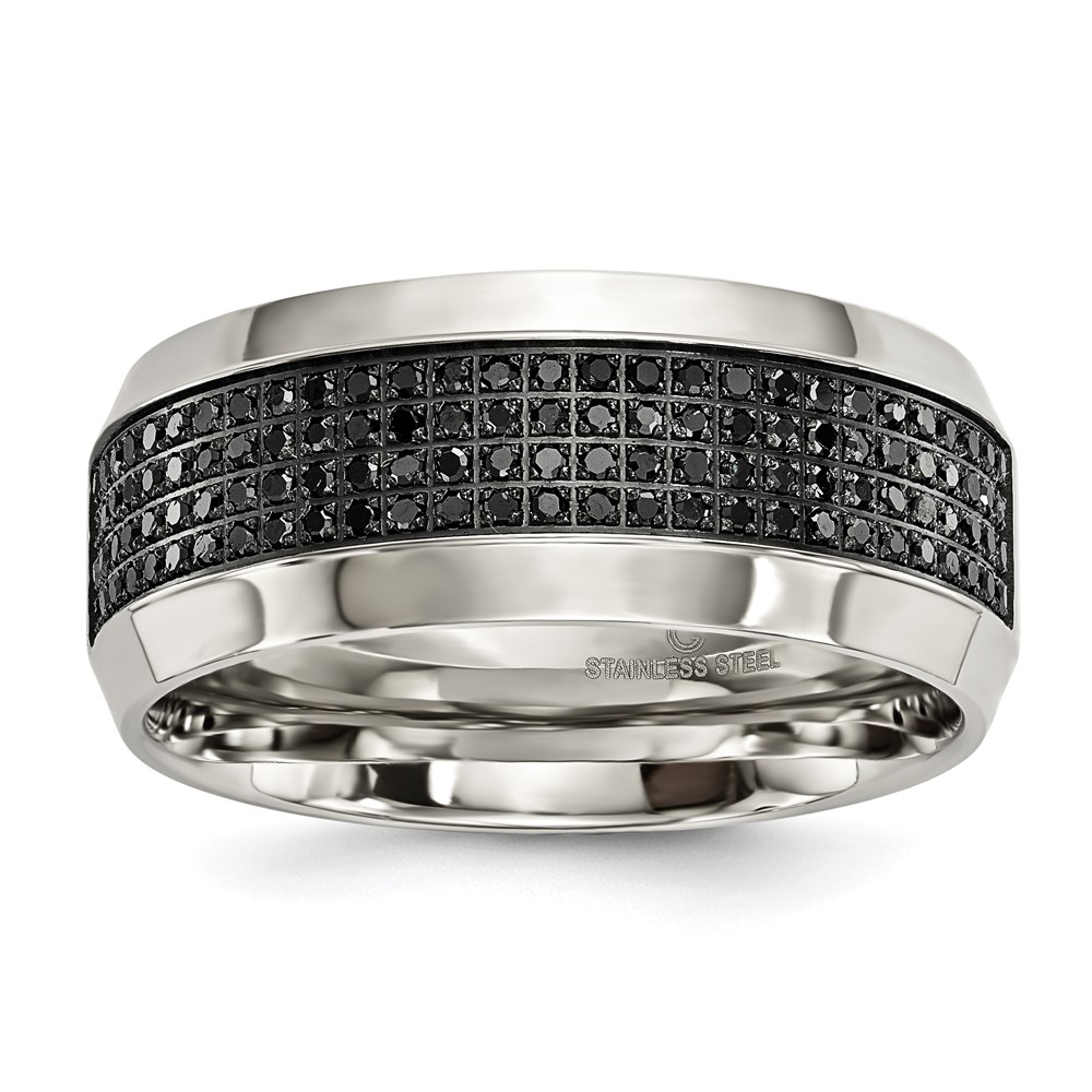 Stainless Steel 10mm Black Diamond Ring