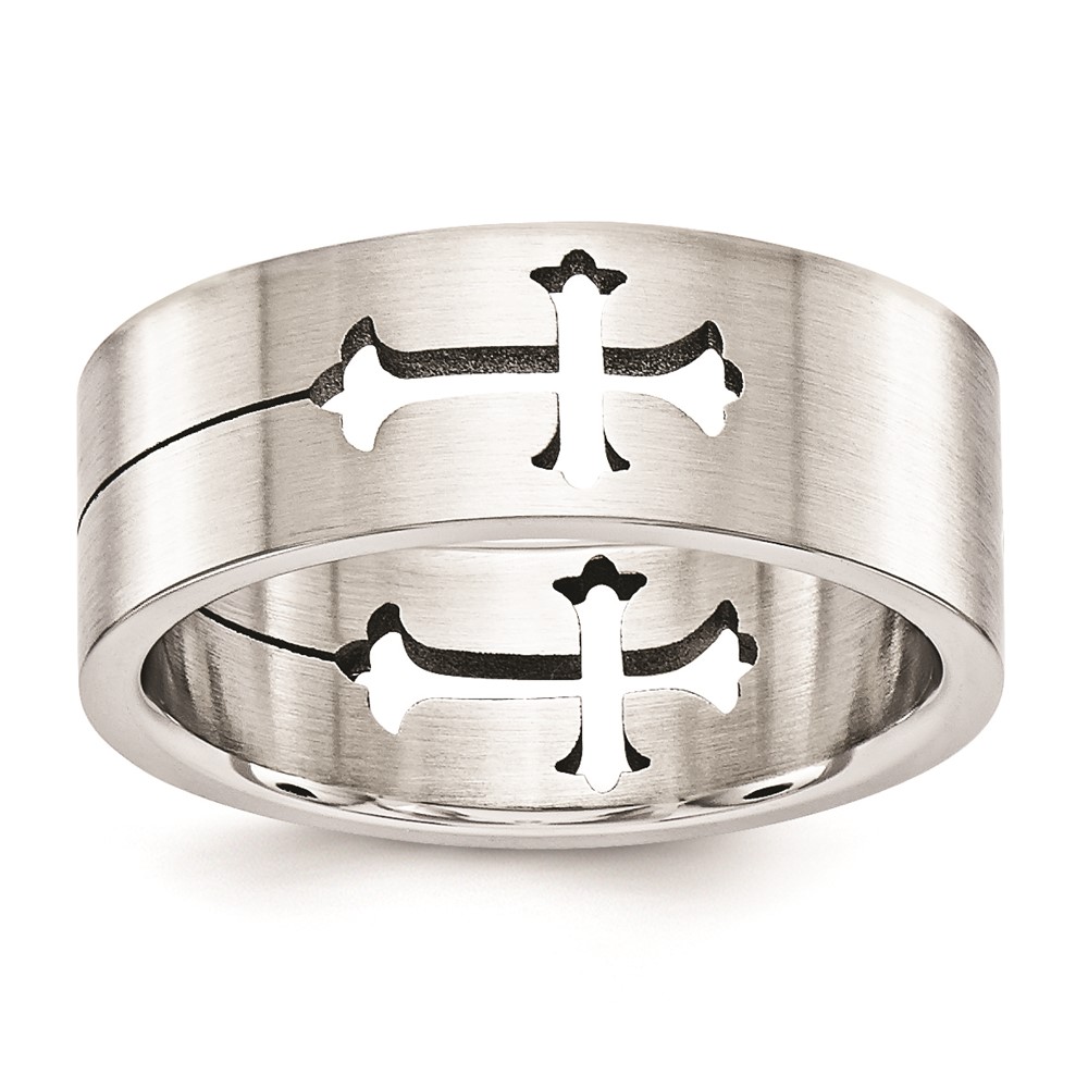 Stainless Steel 8mm Gents Cross Cut out Band