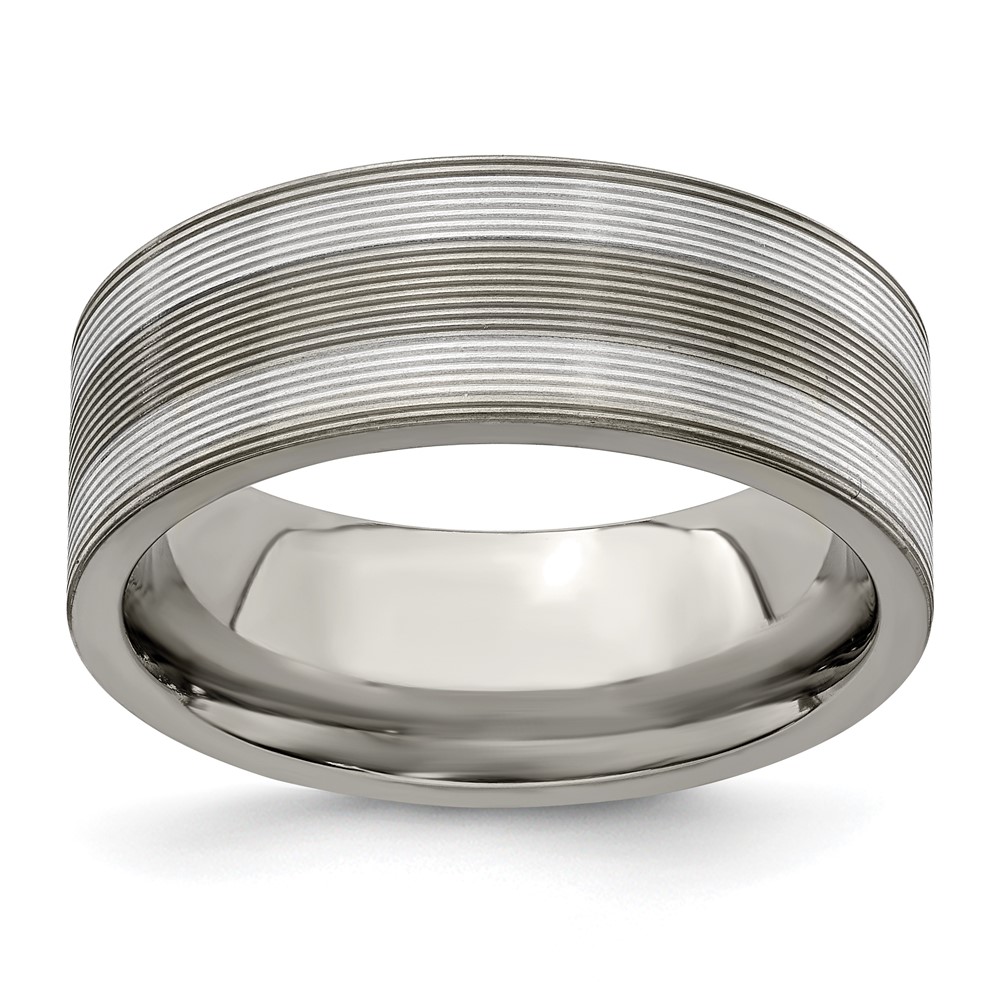 Edward Mirell Titanium with Sterling Silver Inlay Grooved 8.5mm Band