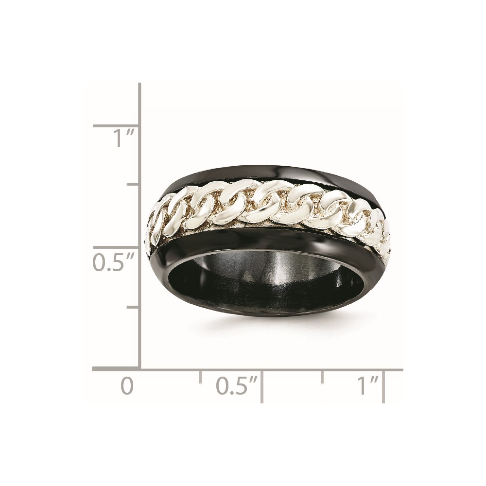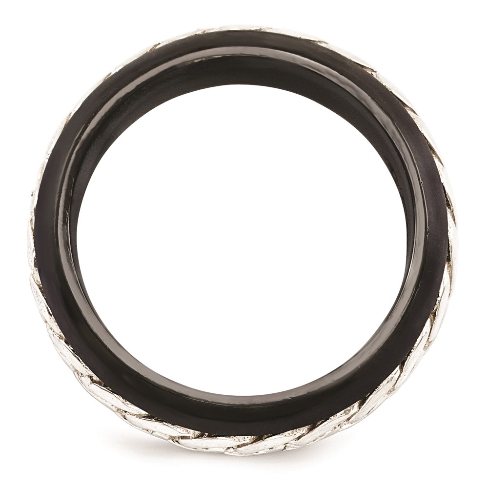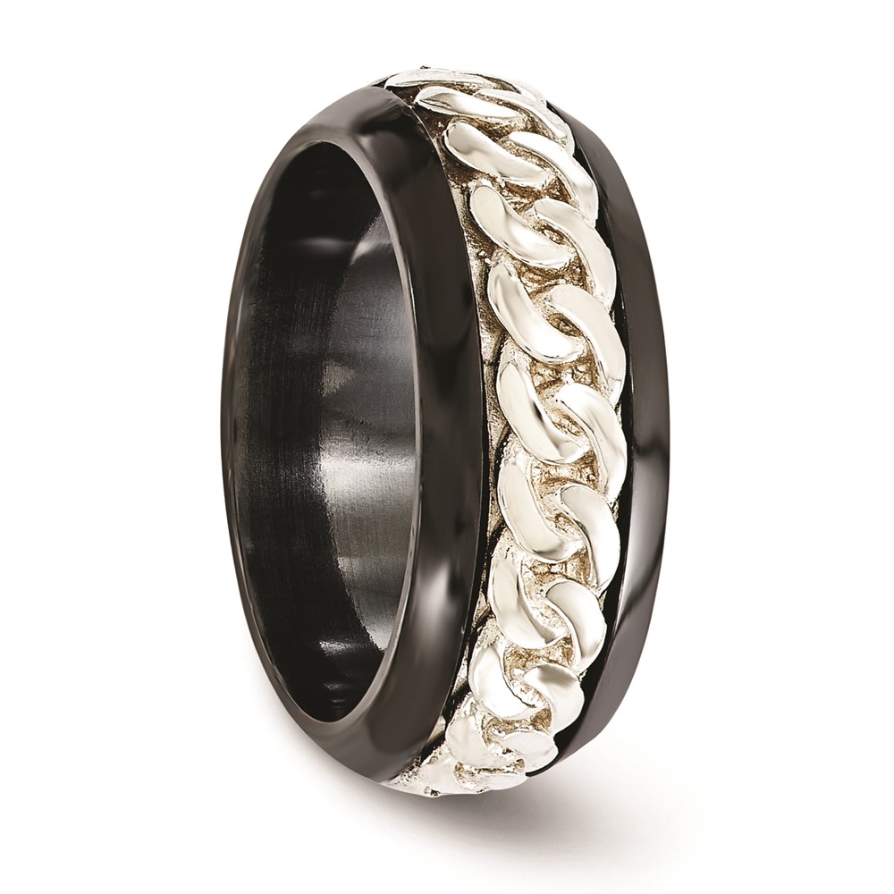 Edward Mirell Black Ti & Sterling Silver Beveled Casted 9mm Band
