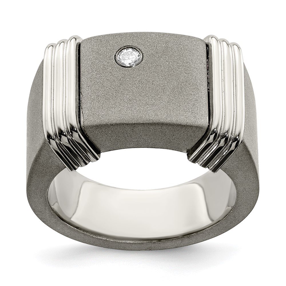 Edward Mirell Titanium & Argentium Sterling Silver Diamond Signet Ring