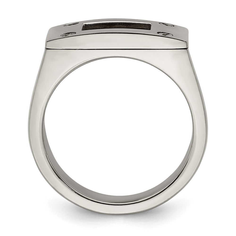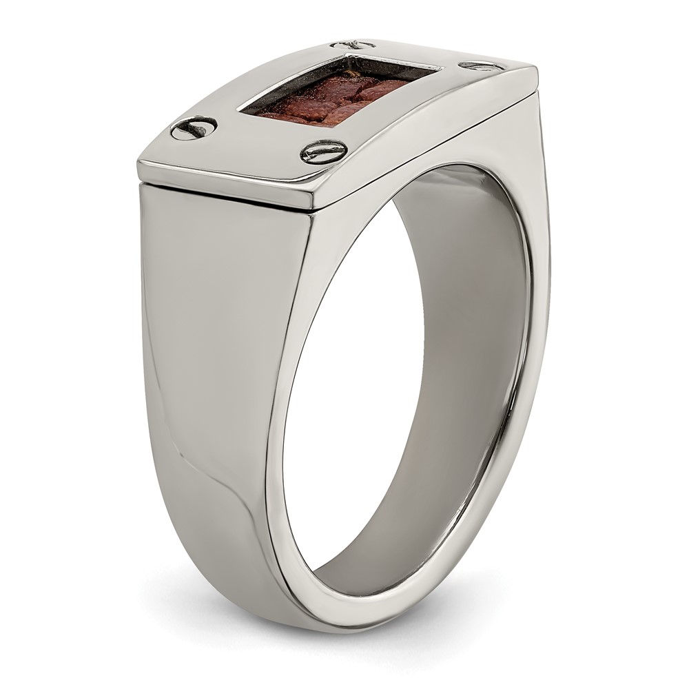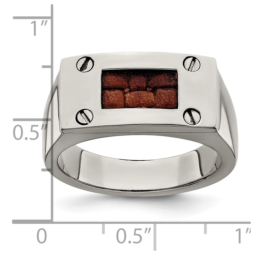 Edward Mirell Titanium Brown Leather Insert Polished Ring