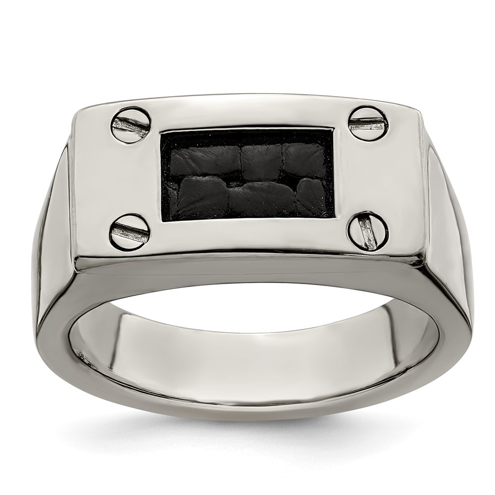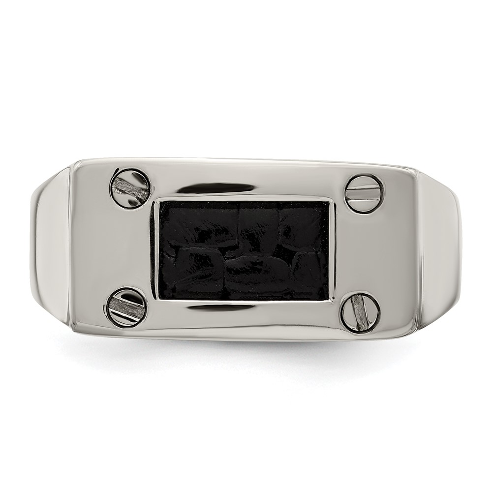 Edward Mirell Titanium Black Leather Insert Polished Ring