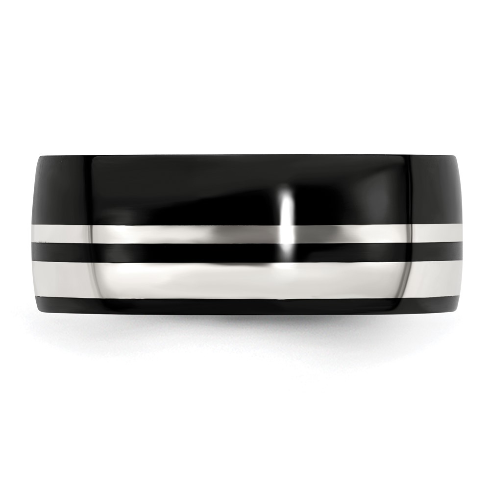 Edward Mirell Black Ti & Sterling Silver 9mm Polished Band