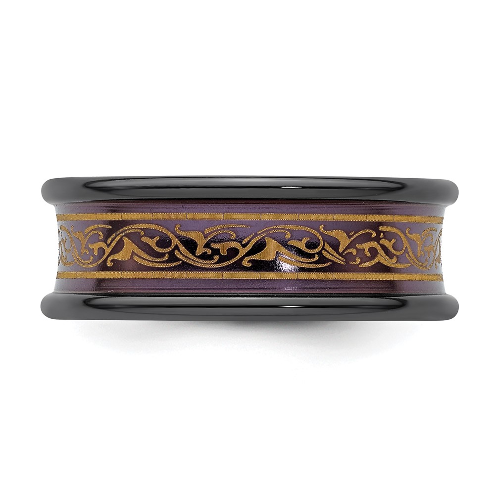 Edward Mirell Black Ti Copper-tone Anodized with Laser Pattern 8mm Concave Band