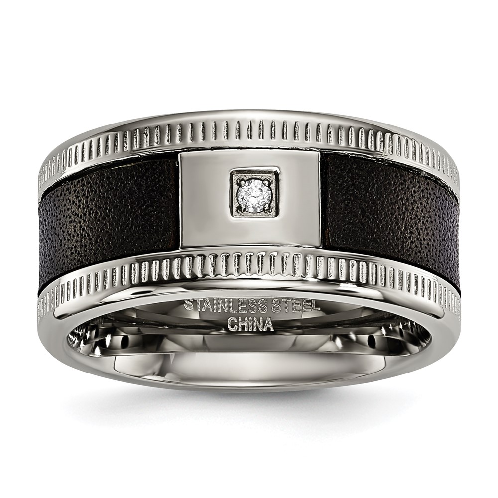 Stainless steel 10.5 mm .025 TCW w/ Black IP & Milgrain Edge Ring