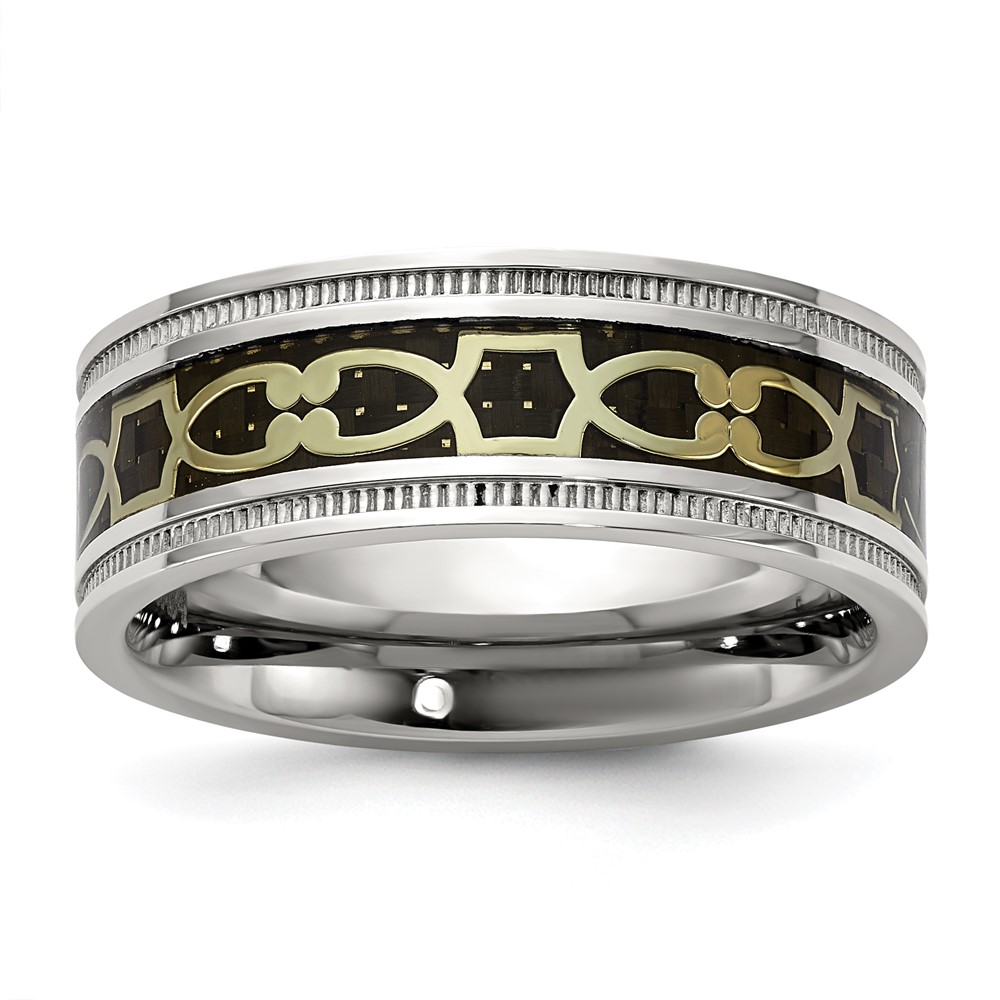 Stainless Steel & Black IP Design 8mm w/ Milgrain Edge Band