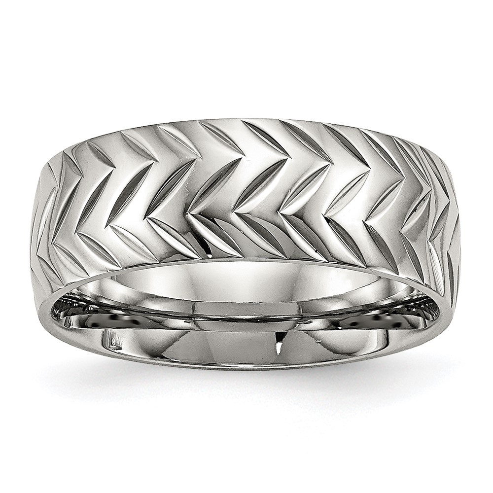 Stainless Steel Polished Diamond Cut 8mm Band