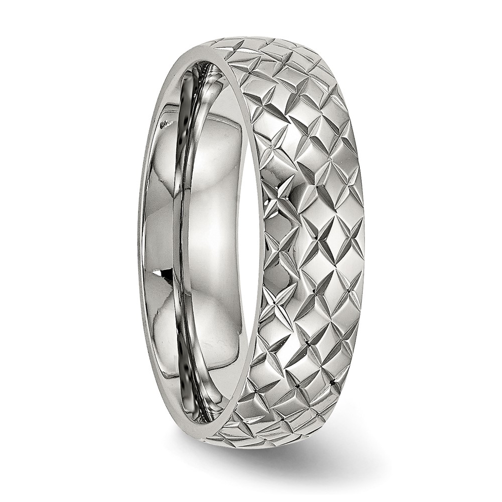 Stainless Steel Polished and Textured Criss Cross Design 6mm Band