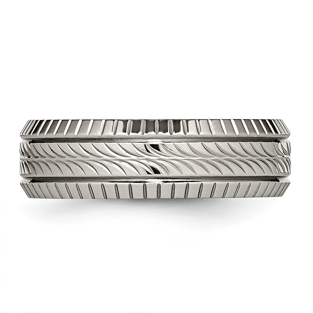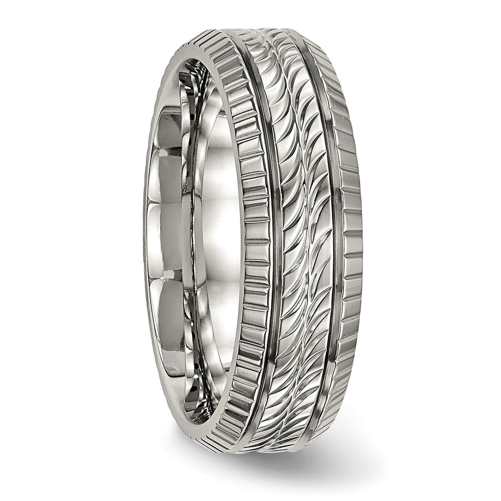Titanium Polished Grooved and Textured 7mm Band