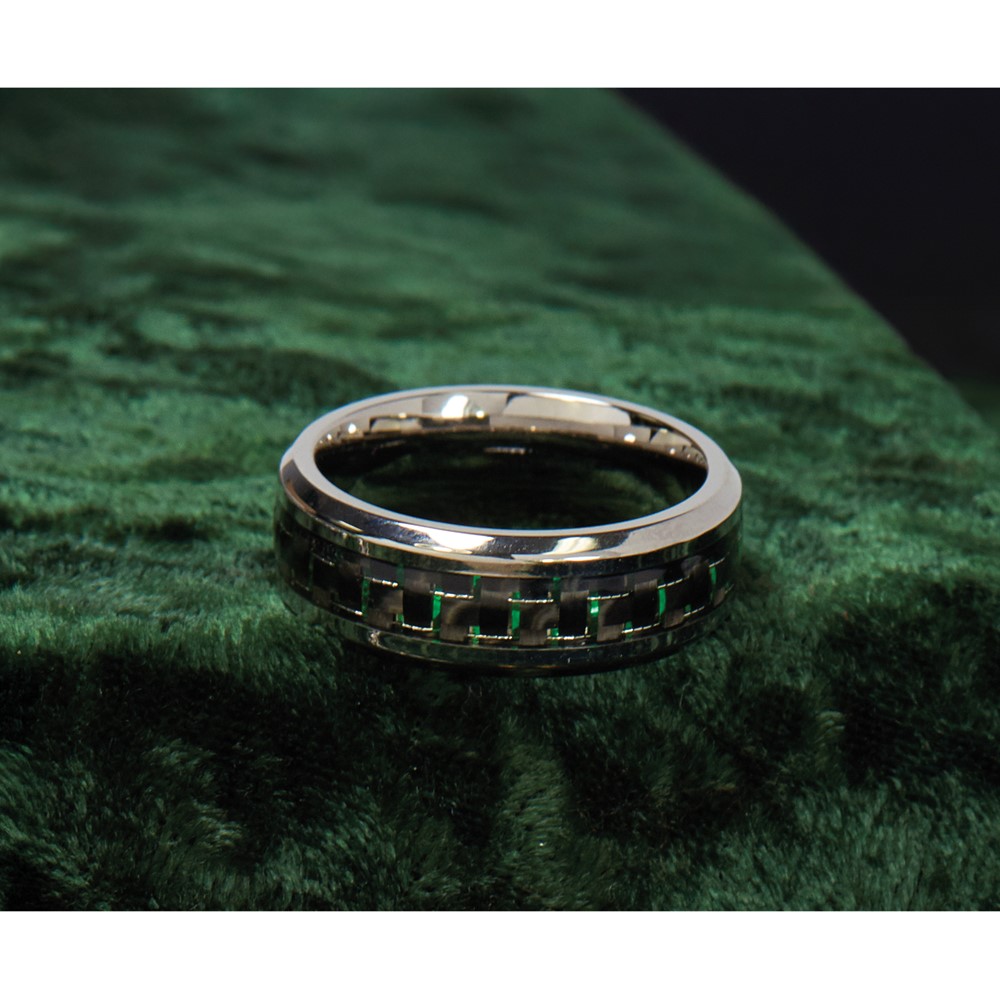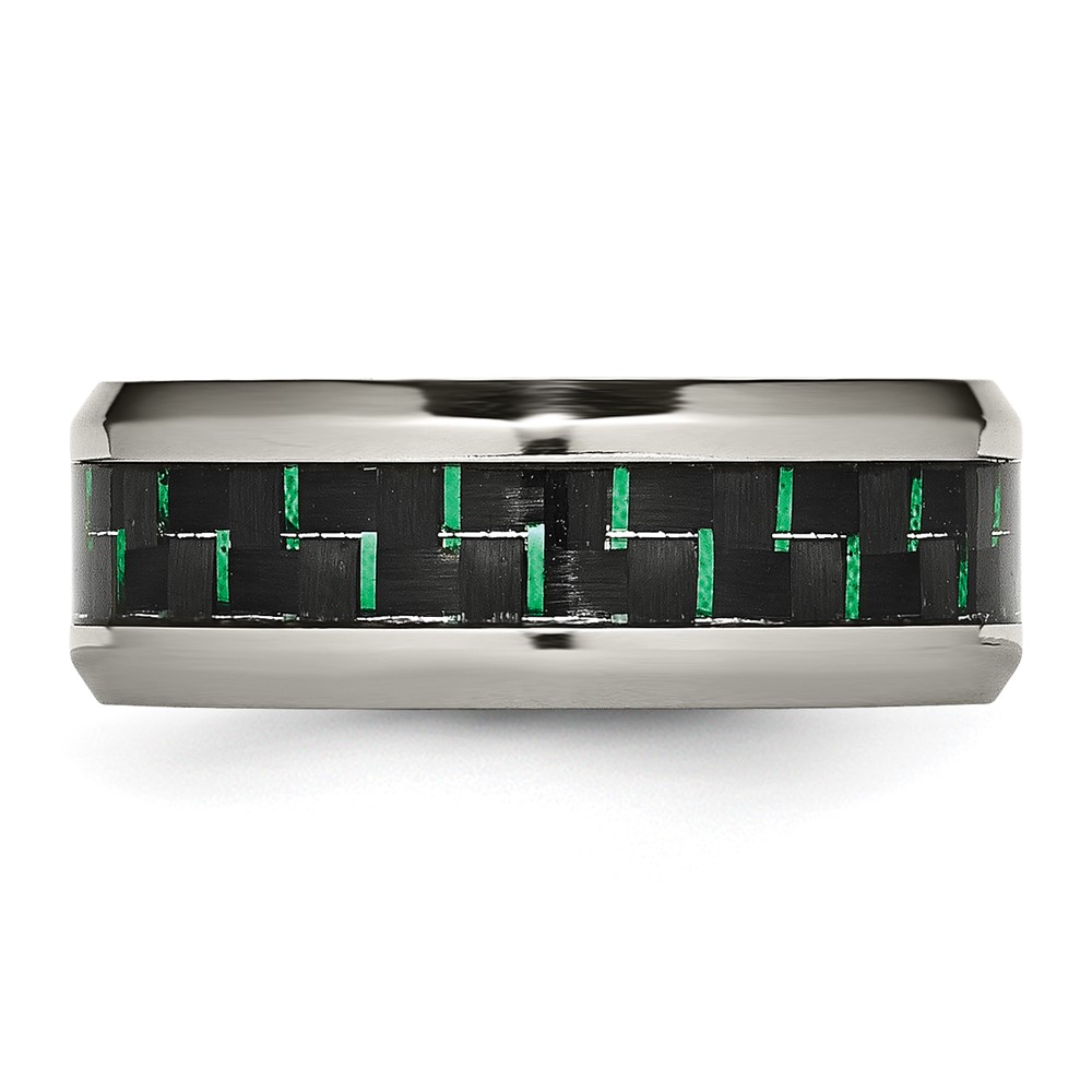 Chisel Titanium Polished with Black and Green Carbon Fiber Inlay 8mm Band