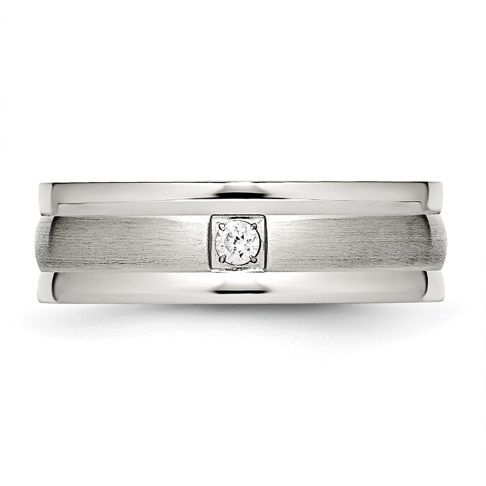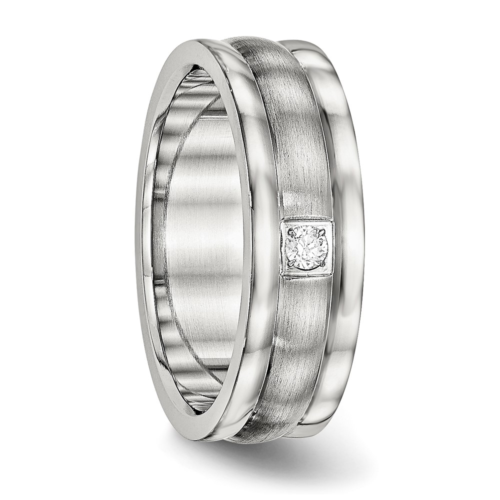 Chisel Stainless Steel Polished with Brushed Center CZ 7mm Grooved Band