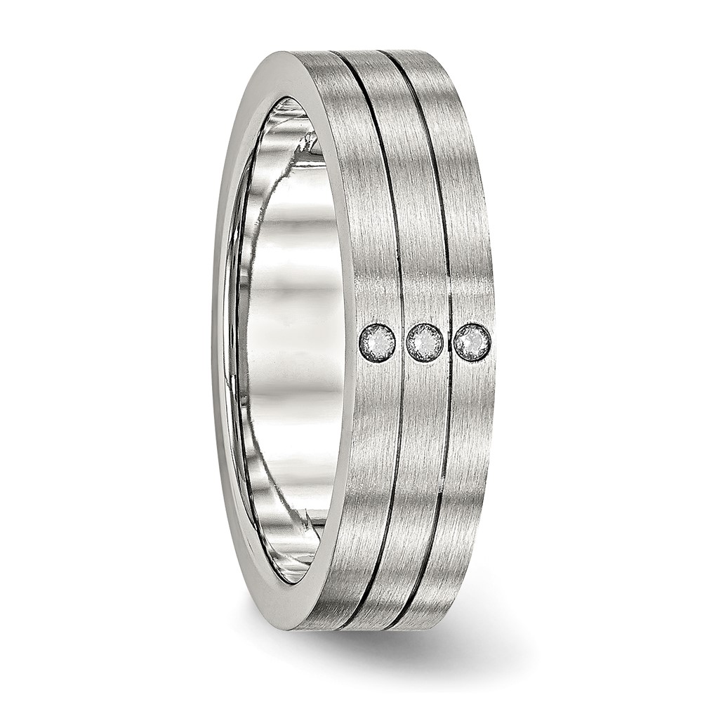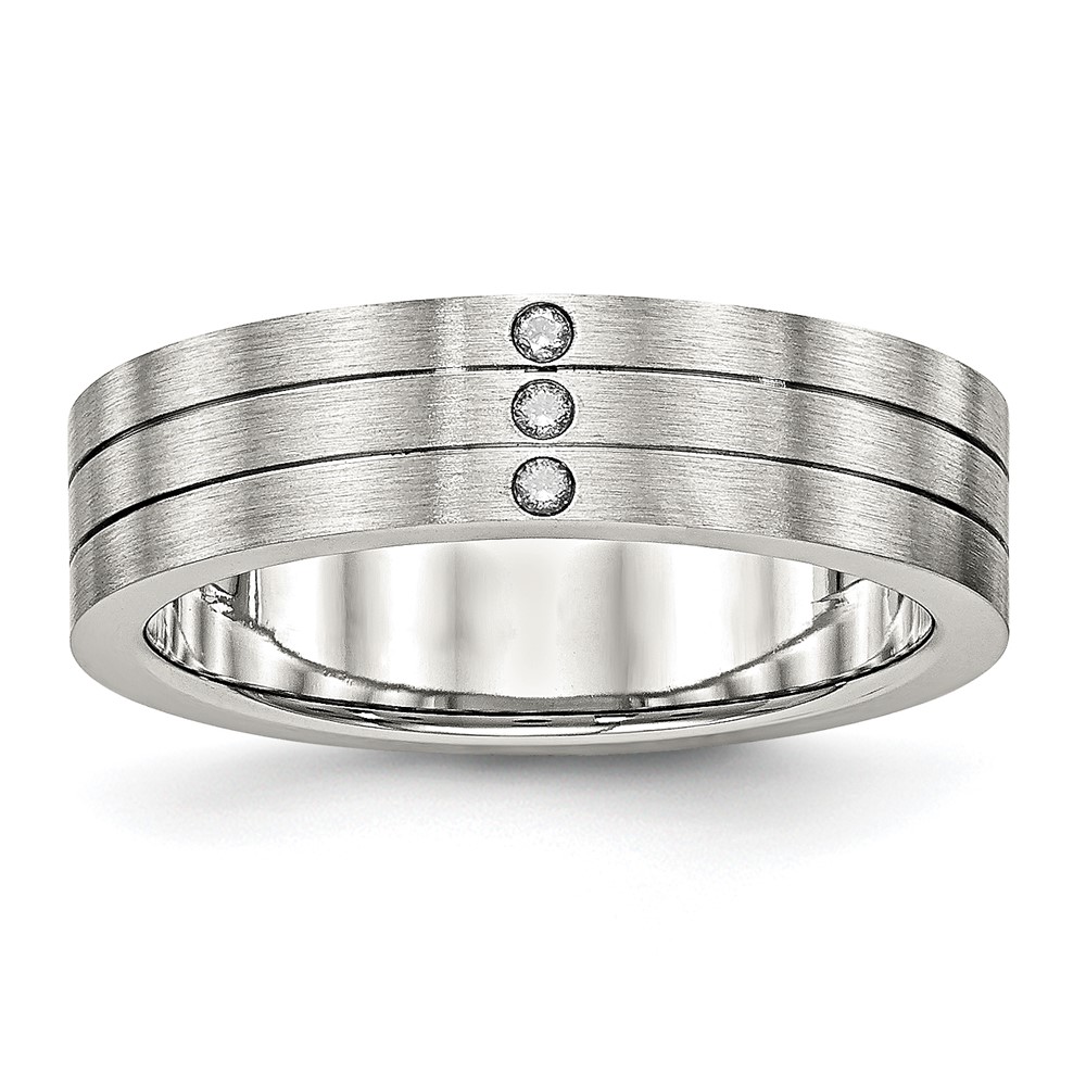 Stainless Steel Brushed w/CZ 6mm Grooved Band