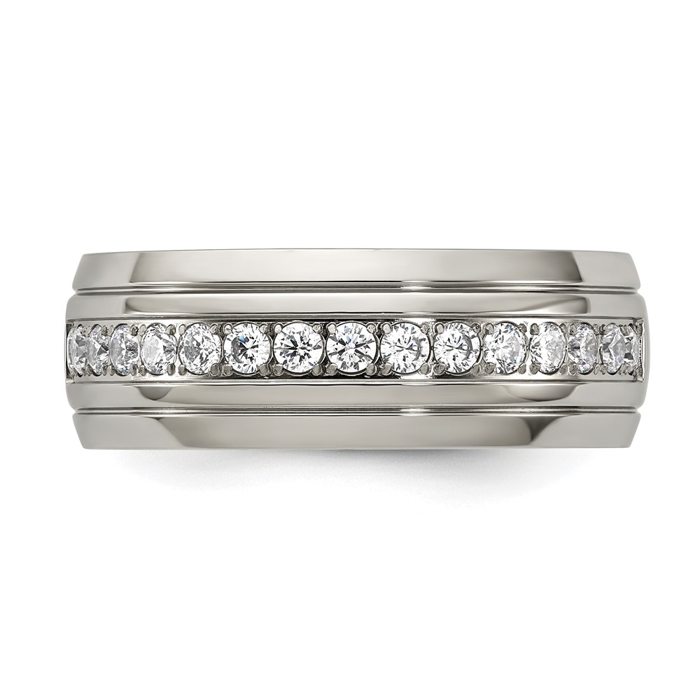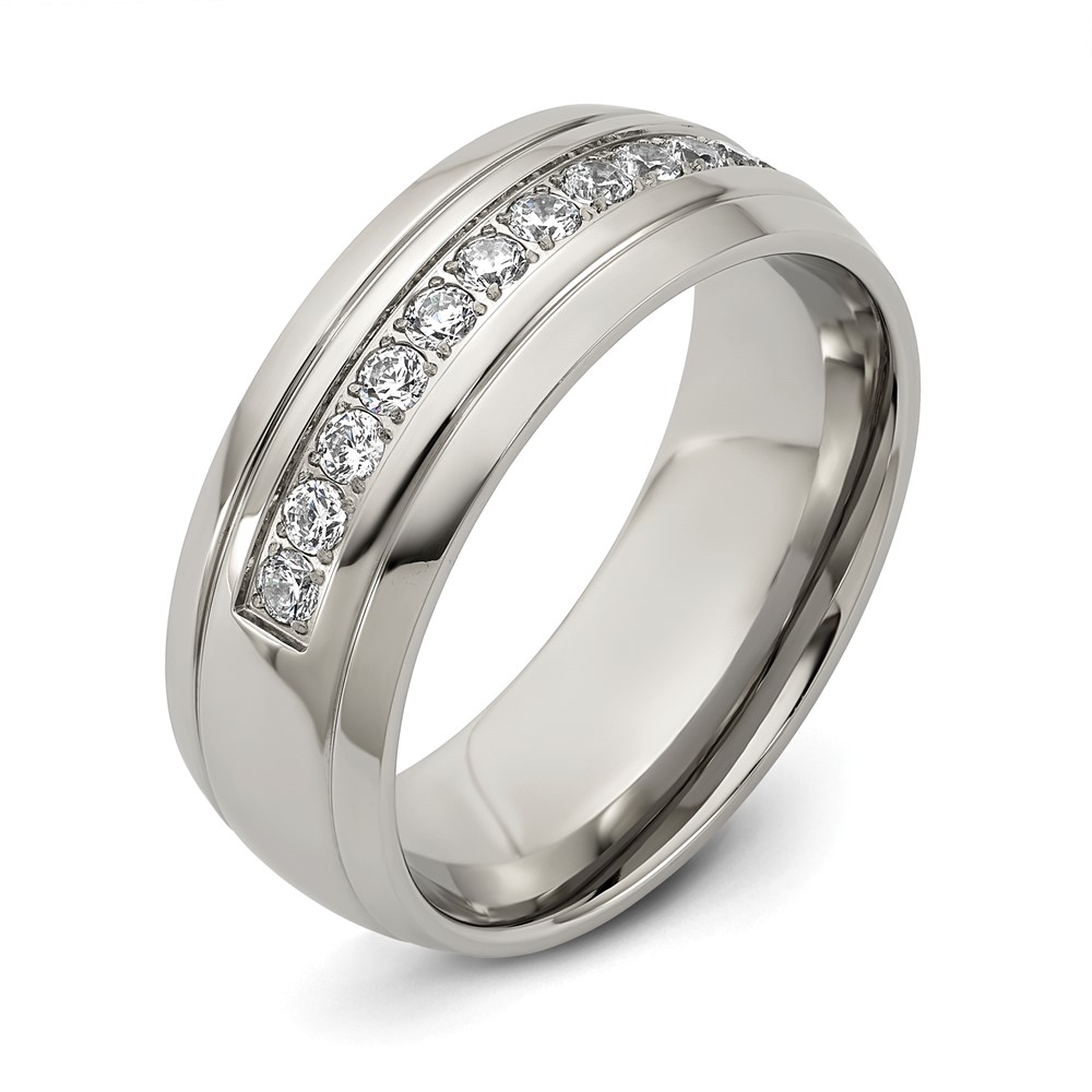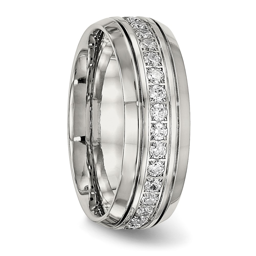 Chisel Stainless Steel Polished and Grooved with CZ 8mm Half Round Band