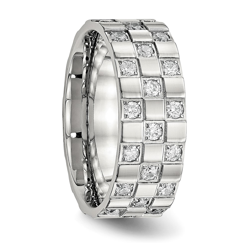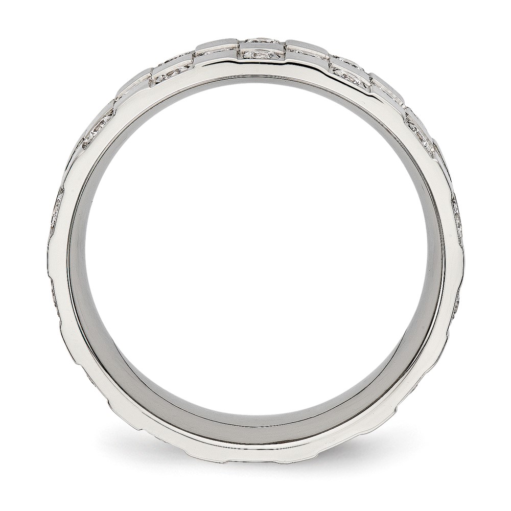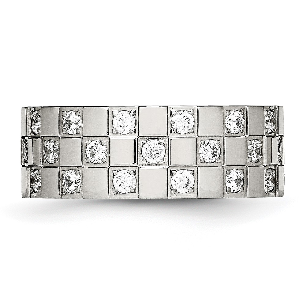 Stainless Steel Polished w/CZ Checkered 8mm Flat Band