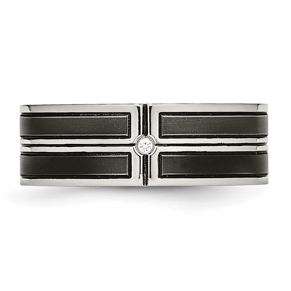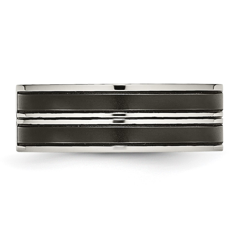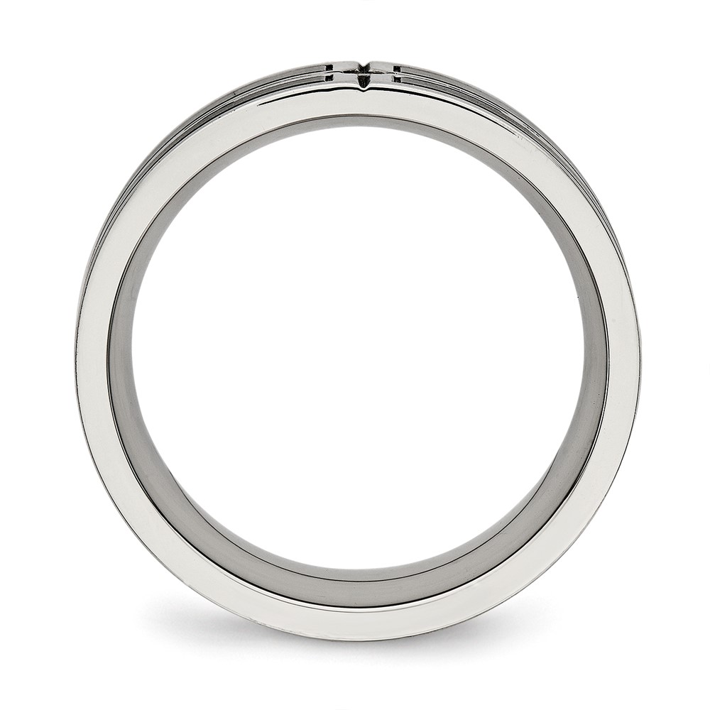Stainless Steel Polished w/Brushed Center Black IP-plated CZ 8mm Band